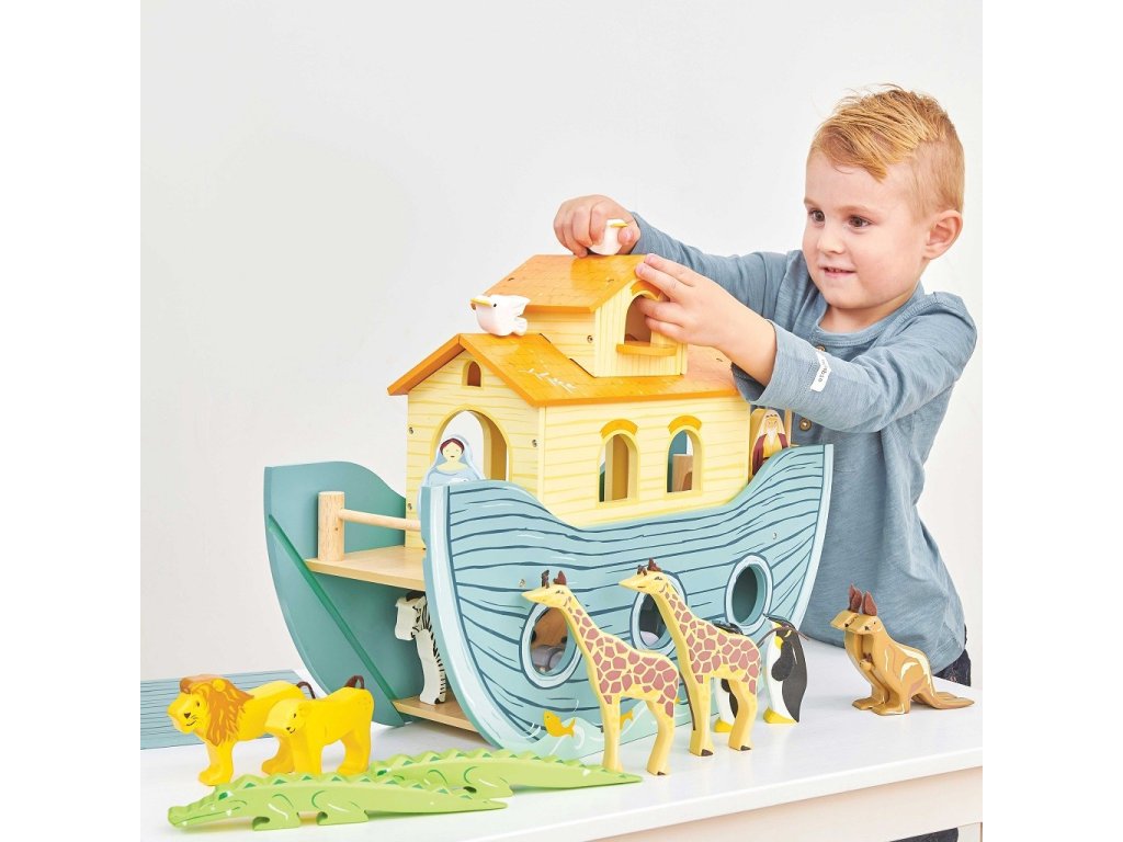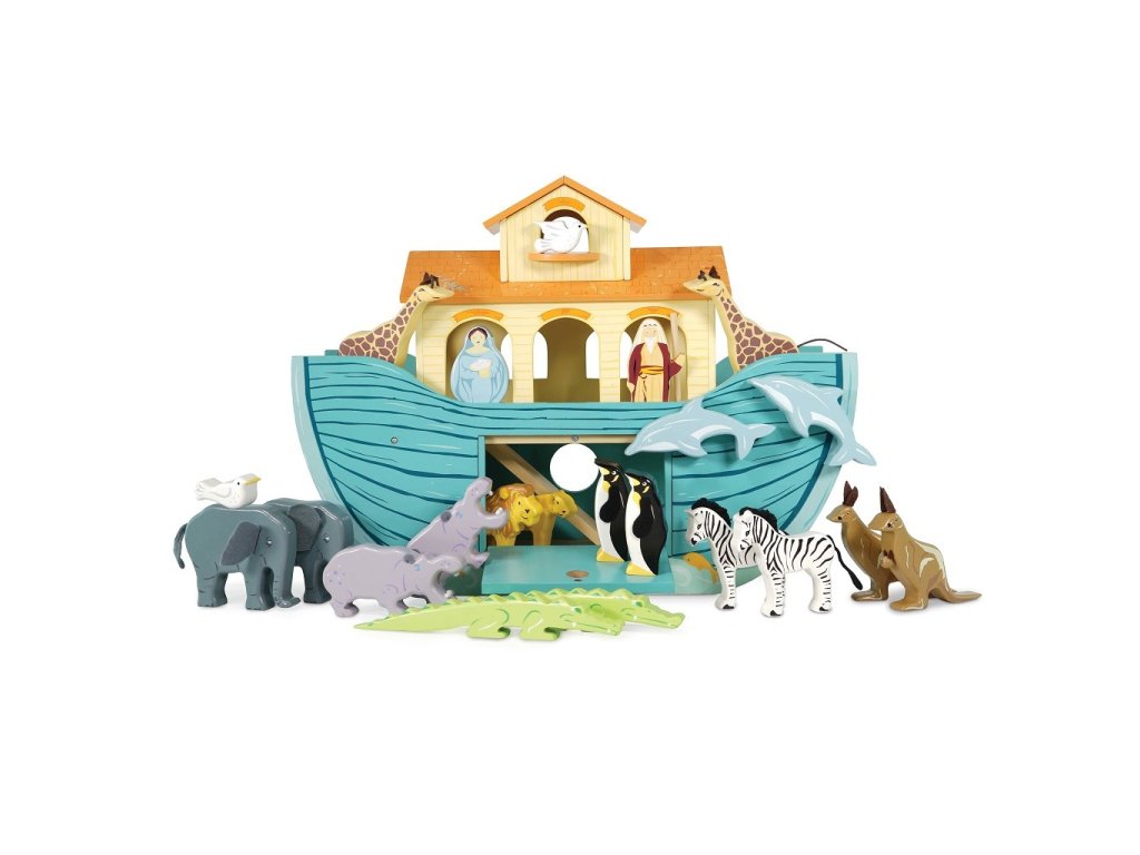 Tradiční hračka je připravena na plavbu dětským světem představivosti. Při hře můžete děti seznámit s příběhem Noema, jeho ženy a zvířat. Velká archa je opravdu detailní, deset párů zvířat je ručně malováno, stejně jako figurky lidí. Na přídi lodi výsuvný panel, díky kterému bude hra jednodušší, v trupu lodi odklápěcí dveře, díky kterým mohou zvířata na loď nastoupit i vystoupit. Pomůže s rozvojem zručnosti a kognitivních dovedností. Hračka bez obsahu plastu. Hračky s účelemVšechny hračky firmy Le Toy Van jsou vyrobeny s cílem – aby dlouho vydržely. Designovány s láskou zkušenými řemeslníky za použití etických praktik a udržitelných materiálů, které jsou laskavější k naší planetě. Hlavní vlastnosti: vyrobeno eticky z udržitelného dřevatestováno dle nejpřísnějších standardůmalováno netoxickými barvami na bázi vodyinspiruje k představivé hřerozvíjí kognitivní dovednosti Kolekce balančních arch: Tato kolekce má mnoho krásných detailů, vdechne zvířátkům život. Je vhodná od 12 měsíců do 3 let, pomáhá s rozvojem různých dovedností, například hra na role, zručnost, kognitivní dovednosti. V této kolekci jsou hlavní tři faktory – vkládání tvarů, balancování zvířátek a představivá hra. Všechny archy jsou inspirovány Noem a jeho zvířátky, tak ať si děti hru velmi užijí!