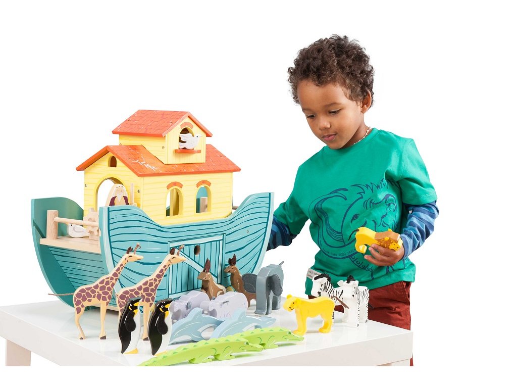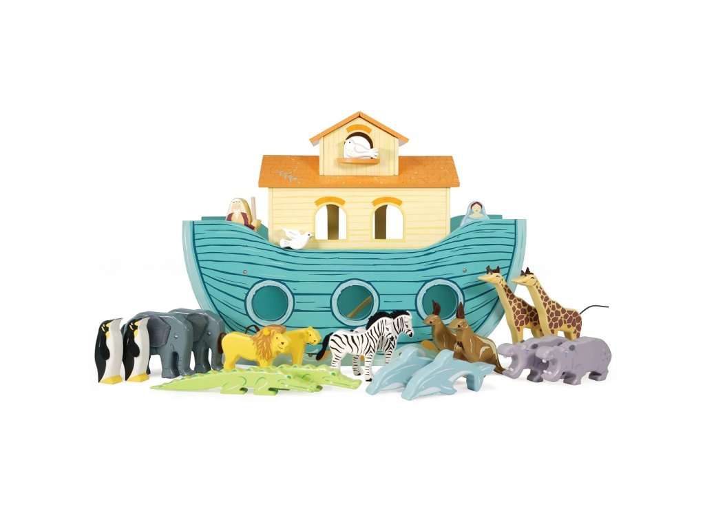 Tradiční hračka je připravena na plavbu dětským světem představivosti. Při hře můžete děti seznámit s příběhem Noema, jeho ženy a zvířat. Velká archa je opravdu detailní, deset párů zvířat je ručně malováno, stejně jako figurky lidí. Na přídi lodi výsuvný panel, díky kterému bude hra jednodušší, v trupu lodi odklápěcí dveře, díky kterým mohou zvířata na loď nastoupit i vystoupit. Pomůže s rozvojem zručnosti a kognitivních dovedností. Hračka bez obsahu plastu. Hračky s účelemVšechny hračky firmy Le Toy Van jsou vyrobeny s cílem – aby dlouho vydržely. Designovány s láskou zkušenými řemeslníky za použití etických praktik a udržitelných materiálů, které jsou laskavější k naší planetě. Hlavní vlastnosti: vyrobeno eticky z udržitelného dřevatestováno dle nejpřísnějších standardůmalováno netoxickými barvami na bázi vodyinspiruje k představivé hřerozvíjí kognitivní dovednosti Kolekce balančních arch: Tato kolekce má mnoho krásných detailů, vdechne zvířátkům život. Je vhodná od 12 měsíců do 3 let, pomáhá s rozvojem různých dovedností, například hra na role, zručnost, kognitivní dovednosti. V této kolekci jsou hlavní tři faktory – vkládání tvarů, balancování zvířátek a představivá hra. Všechny archy jsou inspirovány Noem a jeho zvířátky, tak ať si děti hru velmi užijí!