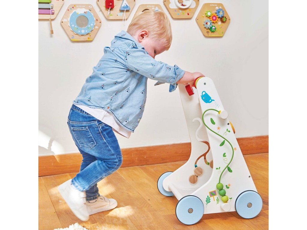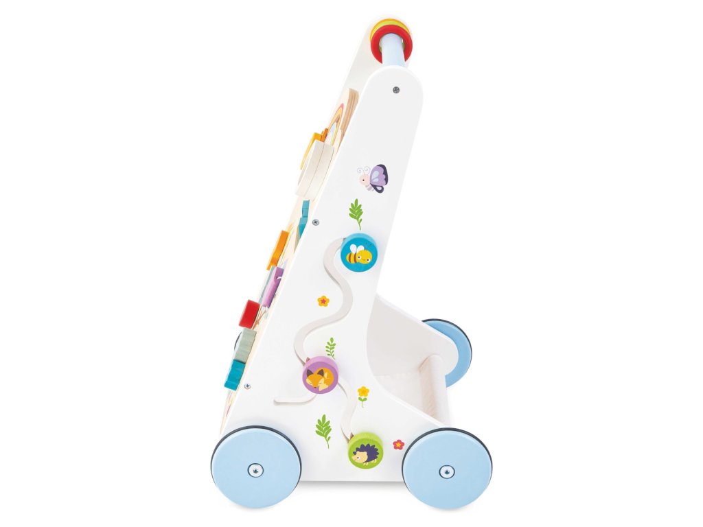Dřevěné chodítko s aktivitami bude perfektním dárkem pro děti, které začínají chodit. Podpoří je a dodá jim odvahu při prvních krůčcích. Krásná hračka v motivu přírody, s ilustracemi lesních zvířátek a dalšími roztomilými detaily. Senzorická hračka s 12 aktivitami děti podpoří v představivé hře. Je vyrobena z odolného a udržitelného kaučukového dřeva, malována netoxickými barvami na bázi vody. Hračky s účelemVšechny hračky firmy Le Toy Van jsou vyrobeny s cílem – aby dlouho vydržely. Designovány s láskou zkušenými řemeslníky za použití etických praktik a udržitelných materiálů, které jsou laskavější k naší planetě. Hlavní vlastnosti: vyrobeno eticky z udržitelného dřevatestováno dle nejpřísnějších standardůmalováno netoxickými barvami na bázi vodyinspiruje k představivé hřerozvíjí kognitivní dovednostimultifunkční hračka Petilou kolekce: Kolekce pro nemluvňata a batolata od Le Toy Van obsahuje hlavně hmatové hračky, které mají nejmenším posloužit také jako učební prostředky. Kolekce je inspirována přírodou kolem nás a je navržena tak, aby rozvíjela smysly dětí pomocí rozdílných zvuků, textur, tvarů a hmotností. Děti tak od malička zapojí všechny své smysly. V kolekci najdete například skládačky, vkládačky, chodítka, …