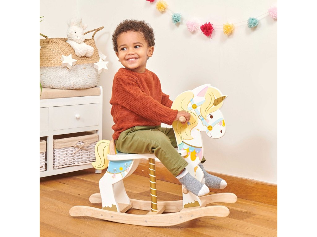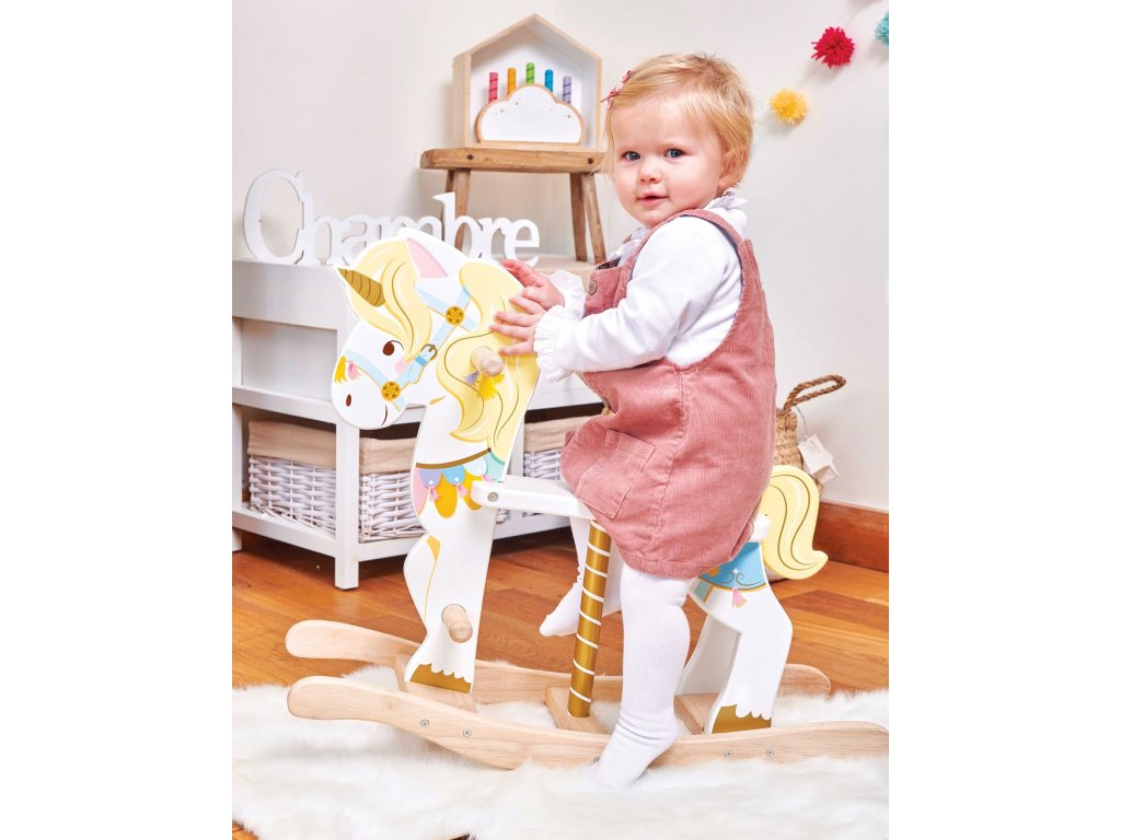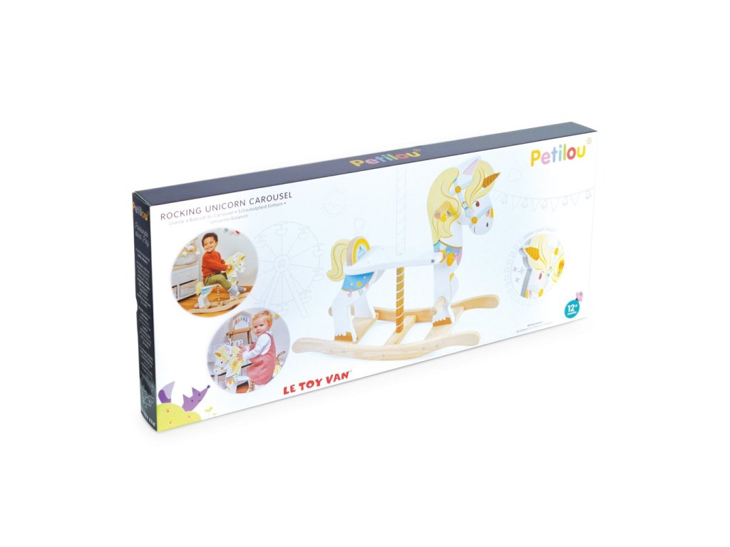 Klasický houpací koník ve stylu kolotočového jednorožce! Perfektní dárek, který okamžitě upoutá pozornost dětí. Malí jezdci a jezdkyně mohou obdivovat krásné barevné detaily, při hře si procvičí mobilitu a rovnováhu. Tato hračka je vyrobená z odolných materiálů, nechybí jí zlatavé detaily, madla pro ruce a opěrky pro nohy. Hračky s účelemVšechny hračky firmy Le Toy Van jsou vyrobeny s cílem – aby dlouho vydržely. Designovány s láskou zkušenými řemeslníky za použití etických praktik a udržitelných materiálů, které jsou laskavější k naší planetě. Hlavní vlastnosti: vyrobeno eticky z udržitelného dřevatestováno dle nejpřísnějších standardůmalováno netoxickými barvami na bázi vodyinspiruje k představivé hřevhodné pro hru na rolehračka vyhrála ocenění Ocenění hračky:European Product Design Honorable Mention Award 2019Good Toy Guide Recommended Petilou kolekce: Kolekce pro nemluvňata a batolata od Le Toy Van obsahuje hlavně hmatové hračky, které mají nejmenším posloužit také jako učební prostředky. Kolekce je inspirována přírodou kolem nás a je navržena tak, aby rozvíjela smysly dětí pomocí rozdílných zvuků, textur, tvarů a hmotností. Děti tak od malička zapojí všechny své smysly. V kolekci najdete například skládačky, vkládačky, chodítka, …