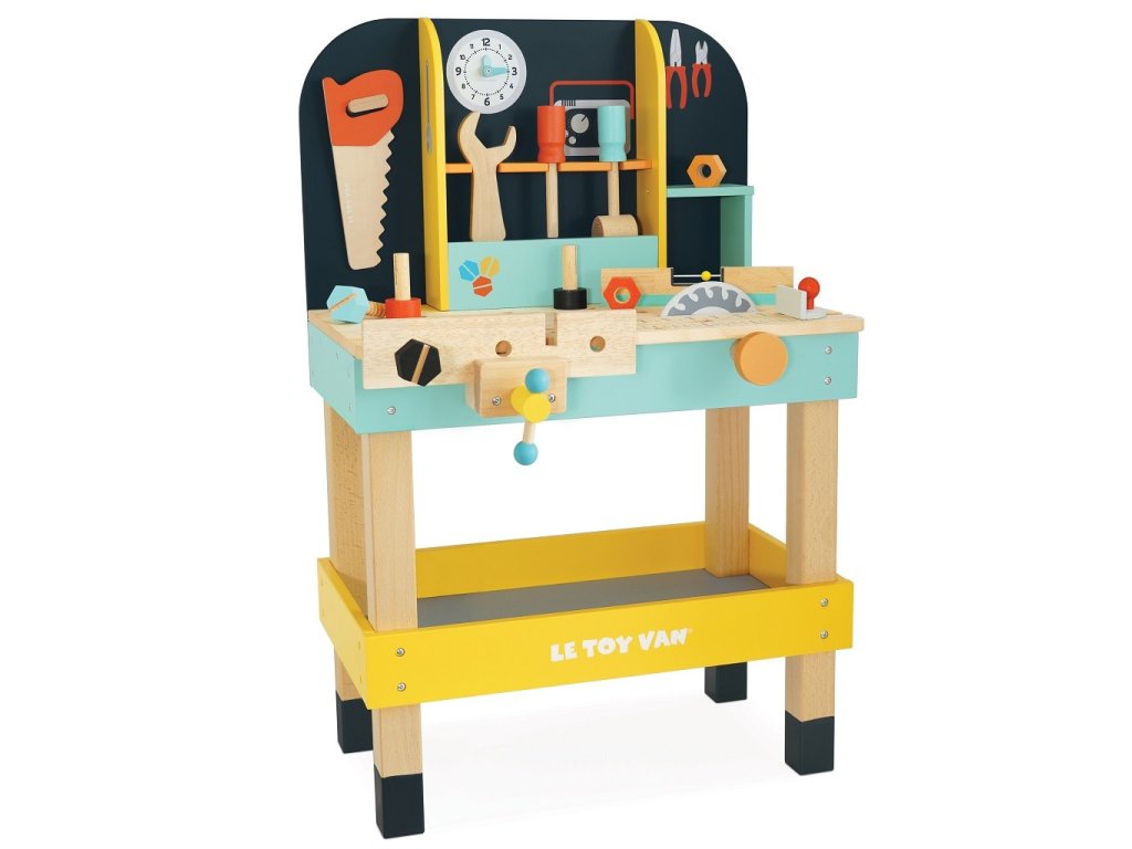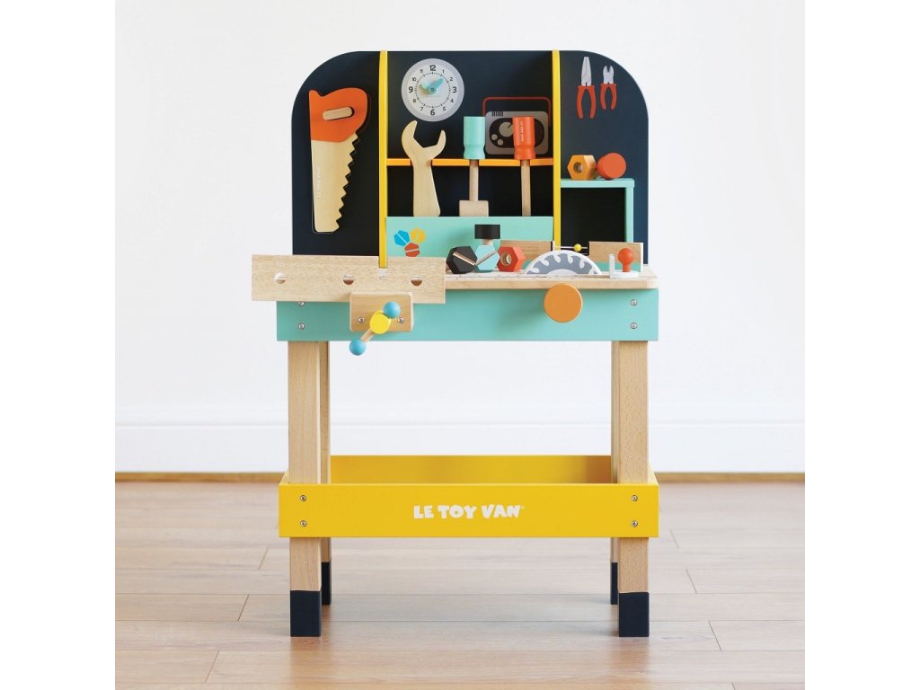 Připravte se na eko zábavu s nářadím. Robustní ponk vás opravdu překvapí, je to produkt, který vyhrál mnoho ocenění. Tato pestrobarevná hračka je vyrobena z odolného a udržitelného kaučukového dřeva, je malována netoxickými barvami na bázi vody. V balení najdete 12 zavalitých dřevěných doplňků, které mají velikost tak akorát pro dětské ruce. Je to pilka, kladivo, šroubovák, klíč, vodováha, 2 šrouby, 2 vruty, 2 hřebíky a dřevěná destička.Realistický ponk, který si děti zamilují, má vestavěnou cirkulárku, měrku a také svěrák. Na zadní stěně najdete polici a háčky pro pracovní nářadí. Ve spodní části najdete další úložný prostor – pro všechny části, které potřebují opravit. Hračka je doplněna o poutavé ilustrace, představivá hra děti doslova pohltí. Hračky s účelemVšechny hračky firmy Le Toy Van jsou vyrobeny s cílem – aby dlouho vydržely. Designovány s láskou zkušenými řemeslníky za použití etických praktik a udržitelných materiálů, které jsou laskavější k naší planetě. Hlavní vlastnosti: vyrobeno eticky z udržitelného dřevatestováno dle nejpřísnějších standardůmalováno netoxickými barvami na bázi vodyinspiruje k představivé hřerozvíjí kognitivní dovednosti Ocenění hračky:Dadsnet Toy Silver Award 2020 Auta & stavby: Stavební a motorická kolekce Le Toy Van, která vyhrála mnoho ocenění. Přesněji prozatím přes 15 ocenění za představivá auta a stavební hračky. Podporují dětskou fantazii, jsou ideální k představivé hře, rozvíjí kreativitu a hravě zlepšují dětskou koordinaci ruka‑oko. Značka a certifikát FSC® (Forest Stewardship Council) zaručuje, že dřevo, ze kterého byl produkt vyroben, nebylo vytěženo nelegálně a pochází z lesů obhospodařovaných šetrným či přírodě blízkým způsobem, ve kterém jsou dodržovány přísné environmentální a sociální požadavky. Značka FSC® na výrobku znamená, že svým nákupem pomáháte chránit lesy a podporujete šetrné, odpovědné či přírodě blízké hospodaření, díky kterému jsou naše lesy stabilnější, zdravější, mají přirozenou druhovou skladbu a lépe odolávají negativním následkům klimatických změn.