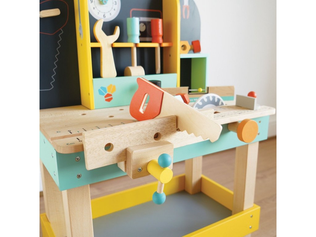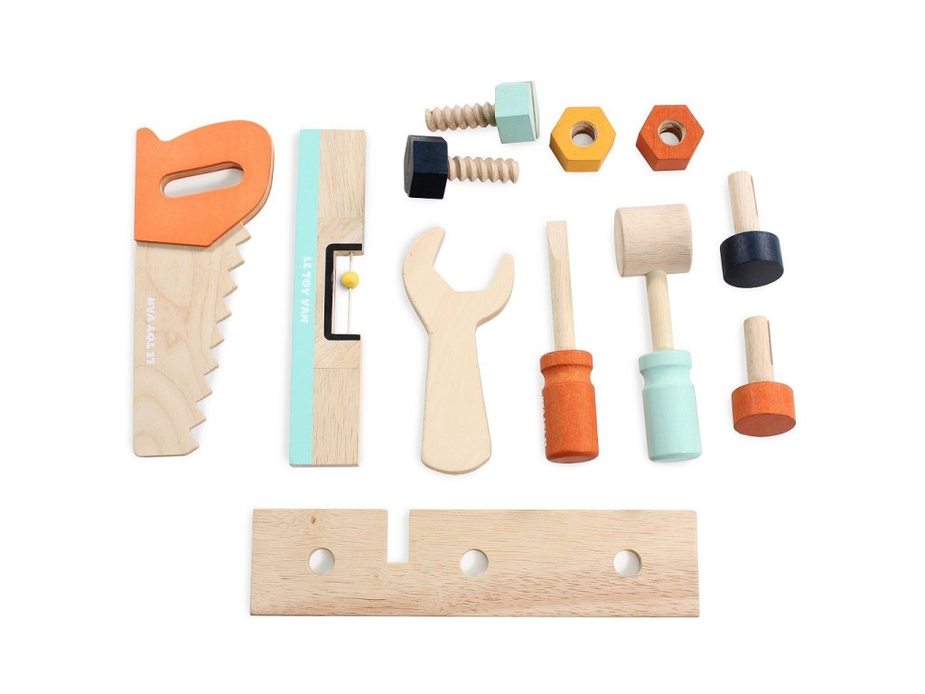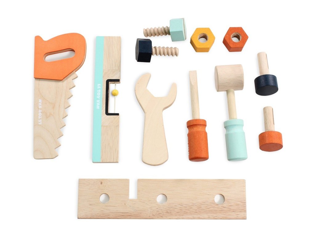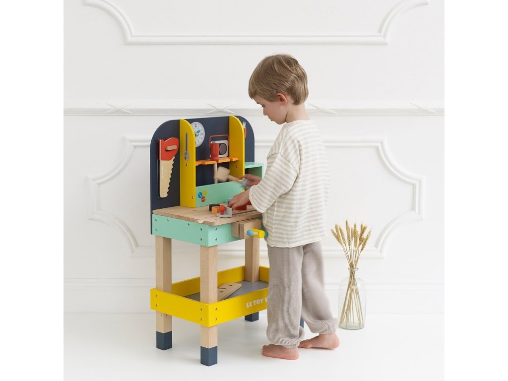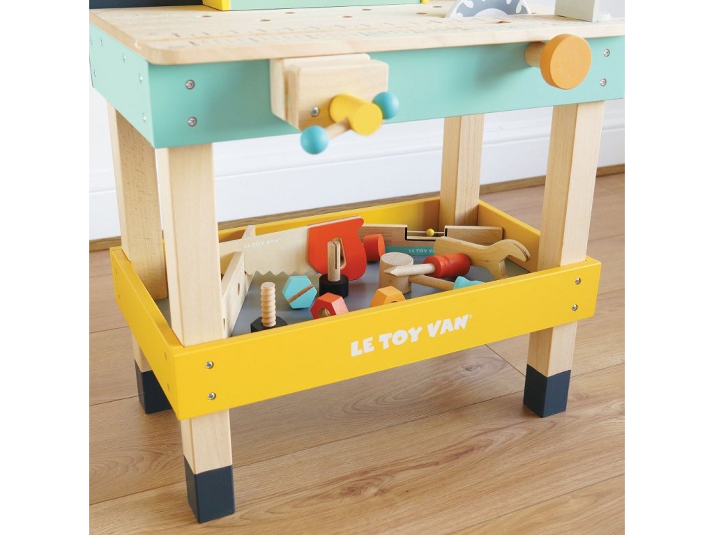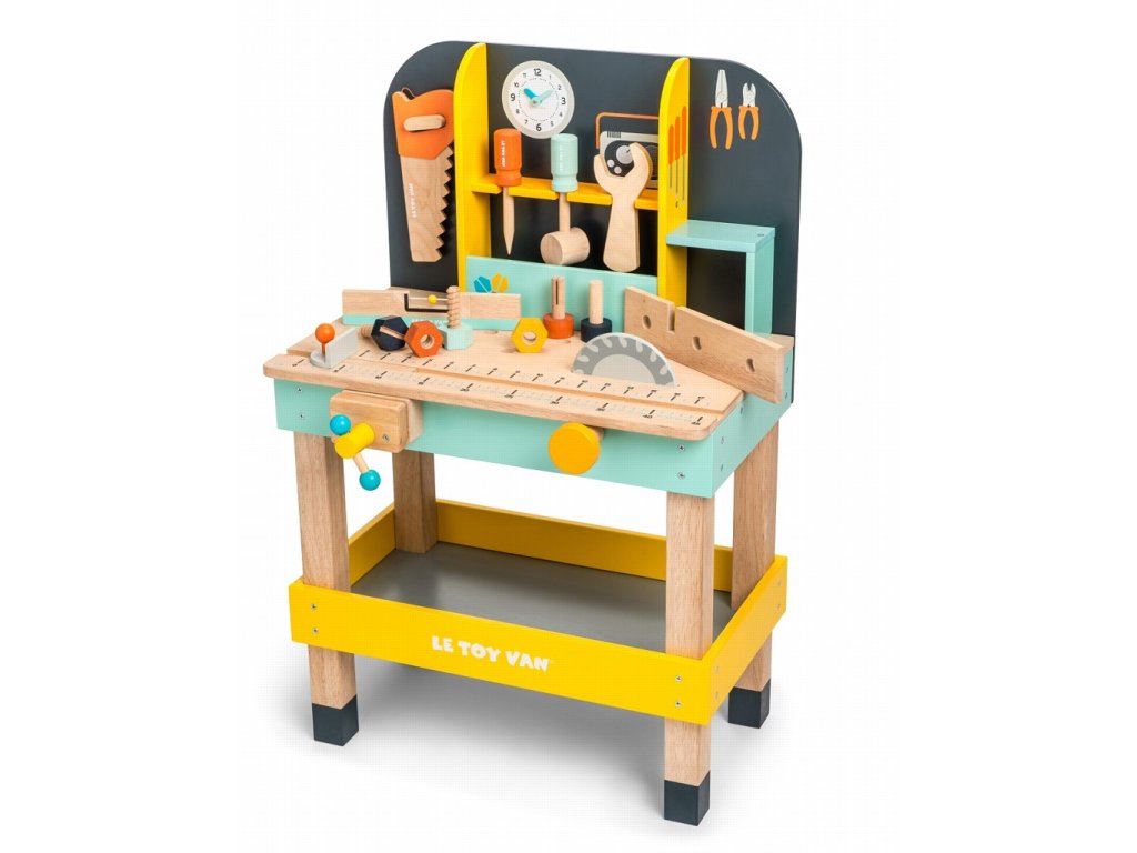 Připravte se na eko zábavu s nářadím. Robustní ponk vás opravdu překvapí, je to produkt, který vyhrál mnoho ocenění. Tato pestrobarevná hračka je vyrobena z odolného a udržitelného kaučukového dřeva, je malována netoxickými barvami na bázi vody. V balení najdete 12 zavalitých dřevěných doplňků, které mají velikost tak akorát pro dětské ruce. Je to pilka, kladivo, šroubovák, klíč, vodováha, 2 šrouby, 2 vruty, 2 hřebíky a dřevěná destička.Realistický ponk, který si děti zamilují, má vestavěnou cirkulárku, měrku a také svěrák. Na zadní stěně najdete polici a háčky pro pracovní nářadí. Ve spodní části najdete další úložný prostor – pro všechny části, které potřebují opravit. Hračka je doplněna o poutavé ilustrace, představivá hra děti doslova pohltí. Hračky s účelemVšechny hračky firmy Le Toy Van jsou vyrobeny s cílem – aby dlouho vydržely. Designovány s láskou zkušenými řemeslníky za použití etických praktik a udržitelných materiálů, které jsou laskavější k naší planetě. Hlavní vlastnosti: vyrobeno eticky z udržitelného dřevatestováno dle nejpřísnějších standardůmalováno netoxickými barvami na bázi vodyinspiruje k představivé hřerozvíjí kognitivní dovednosti Ocenění hračky:Dadsnet Toy Silver Award 2020 Auta & stavby: Stavební a motorická kolekce Le Toy Van, která vyhrála mnoho ocenění. Přesněji prozatím přes 15 ocenění za představivá auta a stavební hračky. Podporují dětskou fantazii, jsou ideální k představivé hře, rozvíjí kreativitu a hravě zlepšují dětskou koordinaci ruka‑oko. Značka a certifikát FSC® (Forest Stewardship Council) zaručuje, že dřevo, ze kterého byl produkt vyroben, nebylo vytěženo nelegálně a pochází z lesů obhospodařovaných šetrným či přírodě blízkým způsobem, ve kterém jsou dodržovány přísné environmentální a sociální požadavky. Značka FSC® na výrobku znamená, že svým nákupem pomáháte chránit lesy a podporujete šetrné, odpovědné či přírodě blízké hospodaření, díky kterému jsou naše lesy stabilnější, zdravější, mají přirozenou druhovou skladbu a lépe odolávají negativním následkům klimatických změn.
