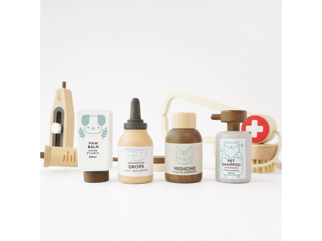 Představujeme Vám sadu pro malé veterináře. Obsahuje veterinární tašku ve stylu vintage, která je vybavena všemi potřebnými nástroji, aby se každému zvířecímu pacientovi dostalo té nejlepší péče. V brašně najdete zklidňující balzám na tlapky, ušní kapky, krabičku na léky, šampon pro domácí mazlíčky, stetoskop, nůžky, injekční stříkačku a měkký kartáček s ekologickými štětinami. Všechny doplňky jsou z mořeného přírodního dřeva s certifikací FSC. Hračky s účelemVšechny hračky firmy Le Toy Van jsou vyrobeny s cílem – aby dlouho vydržely. Designovány s láskou zkušenými řemeslníky za použití etických praktik a udržitelných materiálů, které jsou laskavější k naší planetě. Hlavní vlastnosti: 10 unikátních kusůbezpečnost testována na věk 3 let +vyrobeno eticky z udržitelného dřeva s certifikací FSCtestováno dle nejpřísnějších standardůhračka bez plastuinspiruje ke kreativitě a představivosti Značka a certifikát FSC® (Forest Stewardship Council) zaručuje, že dřevo, ze kterého byl produkt vyroben, nebylo vytěženo nelegálně a pochází z lesů obhospodařovaných šetrným či přírodě blízkým způsobem, ve kterém jsou dodržovány přísné environmentální a sociální požadavky. Značka FSC® na výrobku znamená, že svým nákupem pomáháte chránit lesy a podporujete šetrné, odpovědné či přírodě blízké hospodaření, díky kterému jsou naše lesy stabilnější, zdravější, mají přirozenou druhovou skladbu a lépe odolávají negativním následkům klimatických změn.