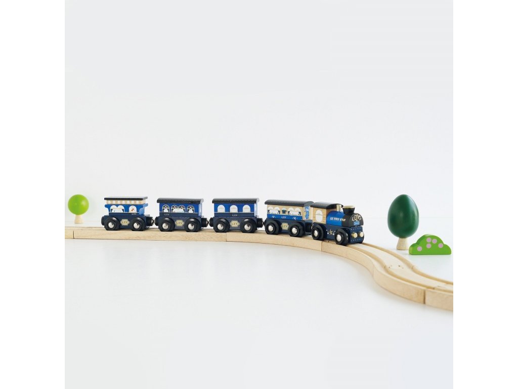 Vláček Twilight projíždí nocí, baví cestující občerstvením a hudbou. Zdobena jedinečným motivem měsíce a hvězd, také zlatými detaily, tato klasická lokomotiva se čtyřmi vozy využívá ve spojích magnety. Vlak Twilight můžete kombinovat s ostatními vláčky firmy Le Toy Van, děti si tak mohou vytvořit vlastní příběhy, představivosti se meze nekladou. Hračka je také kompatibilní s ostatními standardními vláčkodráhami. Ekologické hračky Le Toy Van jsou vyrobeny z odolných materiálů zkušenými řemeslníky, za použití etických praktik a udržitelných materiálů, které jsou laskavější k naší planetě. Hlavní vlastnosti: vyrobeno eticky z udržitelného dřevatestováno dle nejpřísnějších standardůmalováno netoxickými barvami na bázi vodynabádá k představivé hřepomáhá s rozvojem řeči a sociálních dovednostípodporuje při raném vývoji Auta & stavby: Stavební a motorická kolekce Le Toy Van, která vyhrála mnoho ocenění. Přesněji prozatím přes 15 ocenění za představivá auta a stavební hračky. Podporují dětskou fantazii, jsou ideální k představivé hře, rozvíjí kreativitu a hravě zlepšují dětskou koordinaci ruka‑oko.