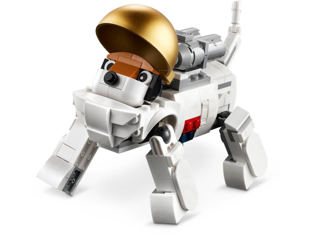Fanoušci LEGO® od 9 let prozkoumají nové planety se stavebnicí Astronaut. Figurka astronauta má odnímatelný batoh s tryskovým pohonem., pohyblivé nohy, chodidla, paže a prsty a otevírací zlaté hledí, za kterým najdete sedadlo pro minifigurku (není součástí balení). alí stavitelé si mohou poskládat hned 3 různé vesmírné modely: Pohyblivého astronauta, futuristického vesmírného psa s pohyblivýma nohama a ocasem nebo vesmírný tryskáč Viper se sedadlem pro minifigurku (není součástí balení). Všechny 3 modely představují krásný dárek s tematikou vesmíru a součástí jsou výstavní podstavce.