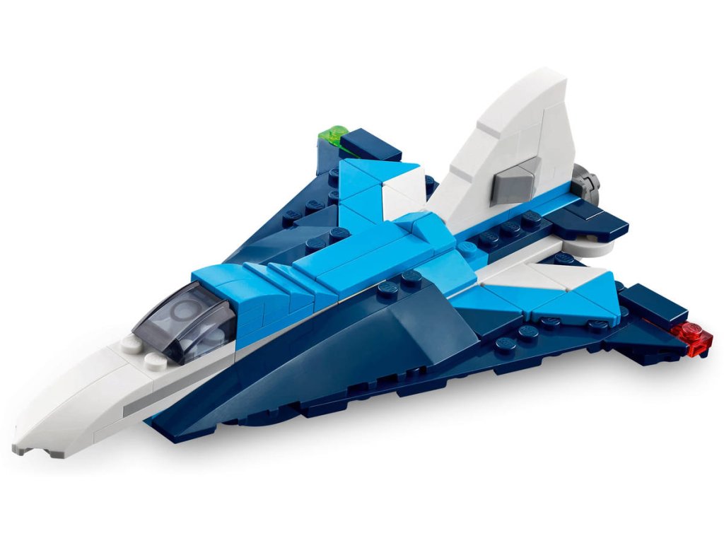 Na kluky a holky od 7 let se stavebnicí LEGO Creator 3 v 1 Závodní letadlo čekají superrychlá dobrodružství. Model letadla má vpředu otočnou vrtuli, pohyblivá kola, aby se mohlo pohybovat po zemi, a podstavec z kostek na vystavení. Děti si postaví 3 úžasná vozidla: model letadla s otáčející se vrtulí a pohyblivými koly, tryskáč s pohyblivými koly a helikoptéru s listovým rotorem. Každý model lze vystavit na stojanu z kostek. Stavebnice představuje působivý dárek pro děti, které mají rády nápadité akční příběhy.