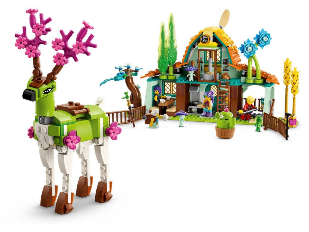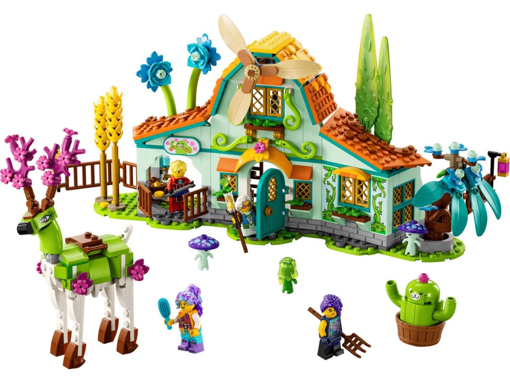 Stavebnice Stáj snových stvoření je inspirována televizním seriálem a zavádí děti od 8 let do kouzelného světa plného přírodních detailů a nových kamarádů, kde se setkají s bájnými stvořeními a postarají se o kouzelné květiny. Je plná úžasných detailů, které podnítí dětskou představivost. Děti nadchne prozkoumávání funkčního větrného mlýnu, stodoly (s otevíracími okny a vraty) a seznamování se s bájnými novými kamarády, jako jsou 2 stvoření ze Světa snů. 1 stavebnice,2 varianty ke stavění Stavebnice umožňuje 2 varianty ke stavění. Děti mají na výběr mezi ozdobením jelena jako létajícího pegase nebo nádherného ochránce lesa. Užijí si tak dvojnásobnou dobu hraní a rozvíjení kreativity. Fantastické detaily Jelen má pohyblivou hlavu a nohy a snadno se tak přizpůsobí hraní a místo paroží mu můžete nasadit květiny ze stáje. Součástí jsou propracované minifigurky Izzie, Zoey, Coopera a paní Castillové.