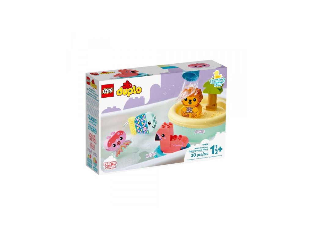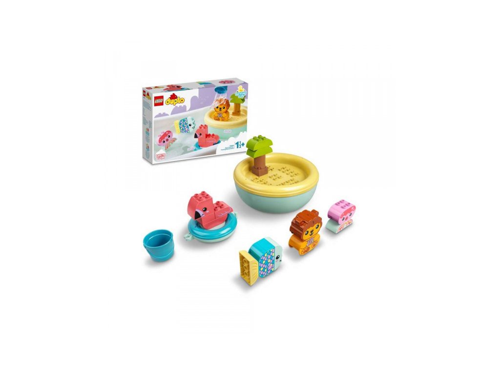 Plovoucí ostrov se zvířátky nabízí spoustu vodní zábavy při večerním koupání. Lev popochází po ostrově. Rybka a chobotnice skotačí ve vodě, plameňák plave kolem. Ostrov se dá rozpojit pro snadné mytí, zvířátka se mohou polévat kyblíkem. Stavebnice LEGO® DUPLO® Plovoucí ostrov se zvířátky se dá spojit se stavebnicemi Plovoucí panda červená a Plovoucí vláček se zvířátky ze série Legrace ve vaně. Při mytí tak nastane ještě větší zábava. Stavebnice jsou ideálním způsobem, jak malým dětem představit LEGO®.
