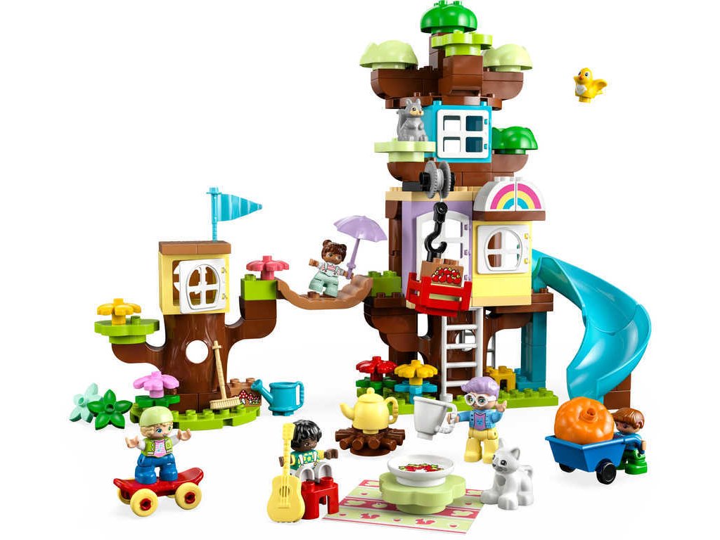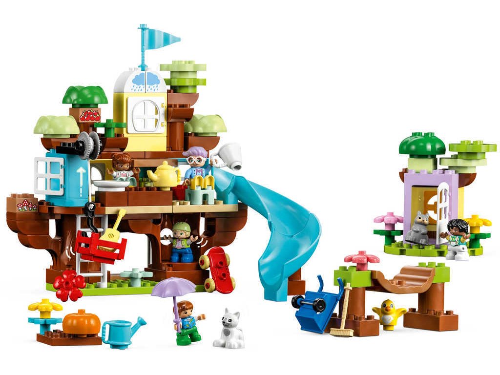 Děti nejprve postaví dechberoucí dobrodružný prostor na hraní se 3 patry, extra dlouhou skluzavkou a vratkým mostem. Pokud se začnou stahovat dešťové mraky, model lze přeskládat na útulný dům na stromě. Třetí model se skládá ze 2 domů na stromě, z nichž každý má vlastní skluzavku, a zahrádky, kde děti mohou sbírat ovoce a nosit je domů pomocí roztomilé kladky.
