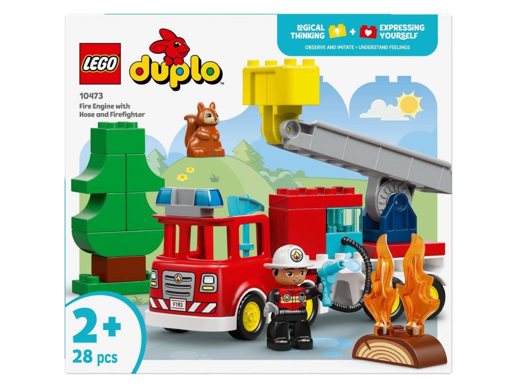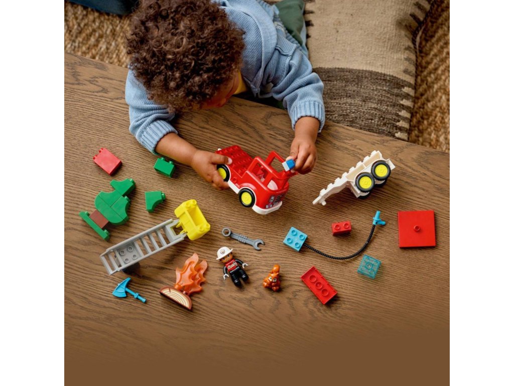 LEGO 10473 - Město: Požární auto s hadicí a hasičem z produktové řady LEGO DUPLO. Kvalitní, dětské plastové kostky.