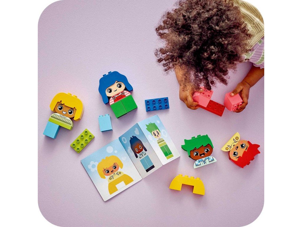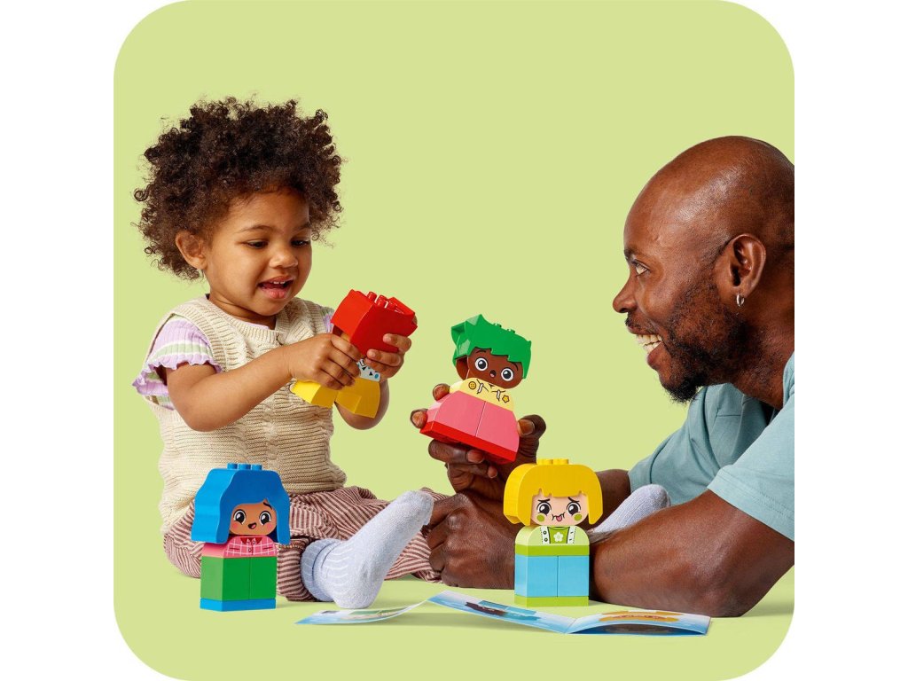 Kognitivní vzdělávací stavebnice Moje první pocity a emoce dětem pomáhá porozumět vlastním pocitům. Součástí jsou 4 různorodé postavy, z nichž má každá dva výrazy, a sada tak dětem umožňuje ukázat, jak se právě cítí. Zvídavé děti vědí, že lidé mají nejrůznější podoby, a s touto inkluzivní hračkou ještě lépe porozumí tomu, že se každý člověk může lišit od těch ostatních. Batolata při stavění postaviček z kostek prohloubí svou kreativitu a jemné motorické dovednosti. Poskládají figurky s vlasy a oblečením stejné barvy a procvičí si poznávání barev – nebo se pustí do stavění figurek v kontrastních odstínech. V této stavebnici LEGO DUPLO najdete řadu kostek zajímavých tvarů, které přímo lákají ke zkoumání malými prstíky,a batolata se s nimi mohou těšit na nekonečné tvoření.