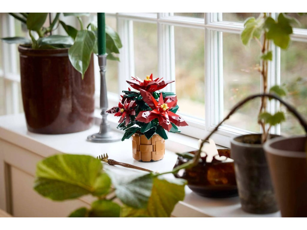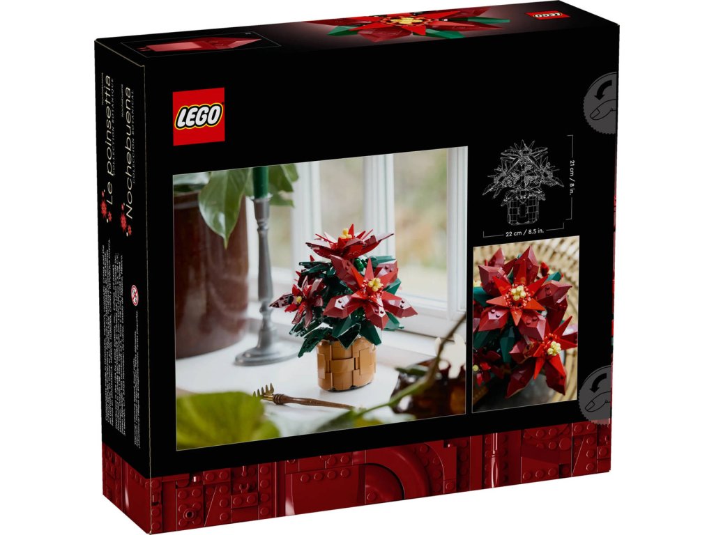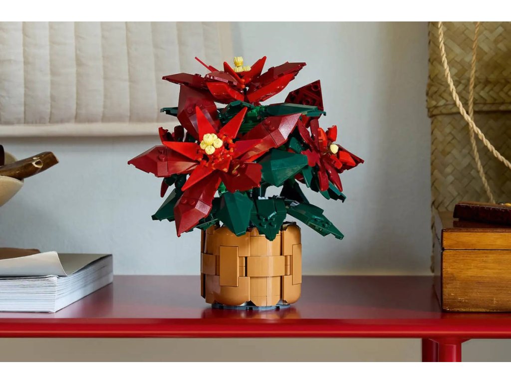 Tato polohovatelná replika vánoční hvězdy z kostek LEGO je zasazená do květináče z tkaného košíku a pyšní se zelenými listy a 5 shluky zářivě červených listů (listenů) se žlutými cyathiemi uprostřed. Stavebnice se snadno sestavuje a přináší obohacující zážitek. Model se pak bude skvěle vyjímat doma i v kanceláři.