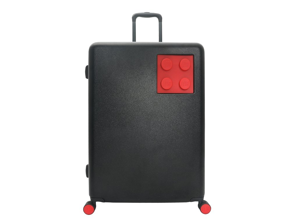 - ikonický LEGO design s barevnou LEGO kostkou na straně jedné a s logem LEGO v barvě kufru na straně druhé