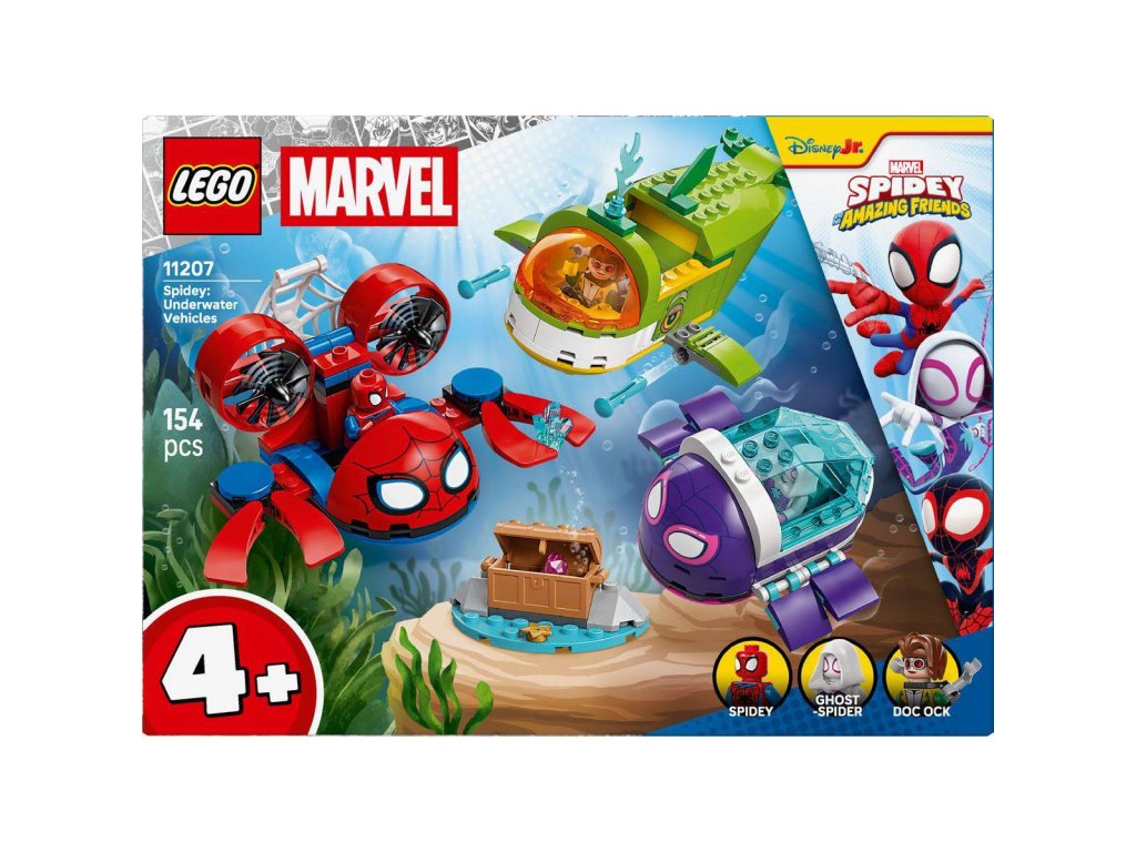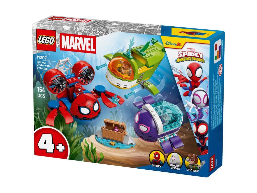 Vydejte se na dobrodružství se stavebnicí Spidey: Podmořská vozidla pro kluky, holky a fanoušky LEGO Marvel od 4 let. Součástí stavebnice je minifigurka Spideyho, Ghost-Spider a Doktorky Ock se 3 ponorkami, díky kterým si děti užijí živou hru, která rozvíjí jejich kreativitu. Nechybí trojice podmořských vozidel: Spideyho krabí ponorka s velkou pavučinovou pastí, želví ponorka Ghost-Spider s otevíracím průhledným krunýřem a velrybí ponorka Doktorky Ock s vystřelovači na ploutvích a úložným prostorem pro truhlu s pokladem. Stavebnice Spidey: Podmořská vozidla poslouží jako skvělý dárek k narozeninám pro fanoušky seriálu Spidey a jeho úžasní přátelé.