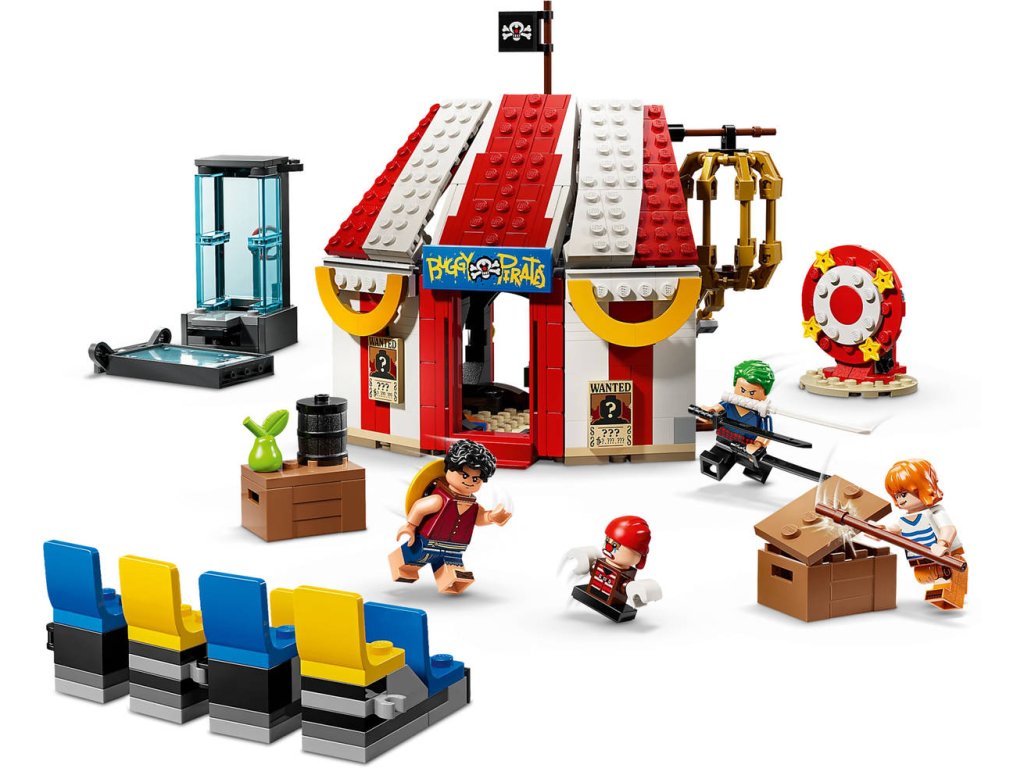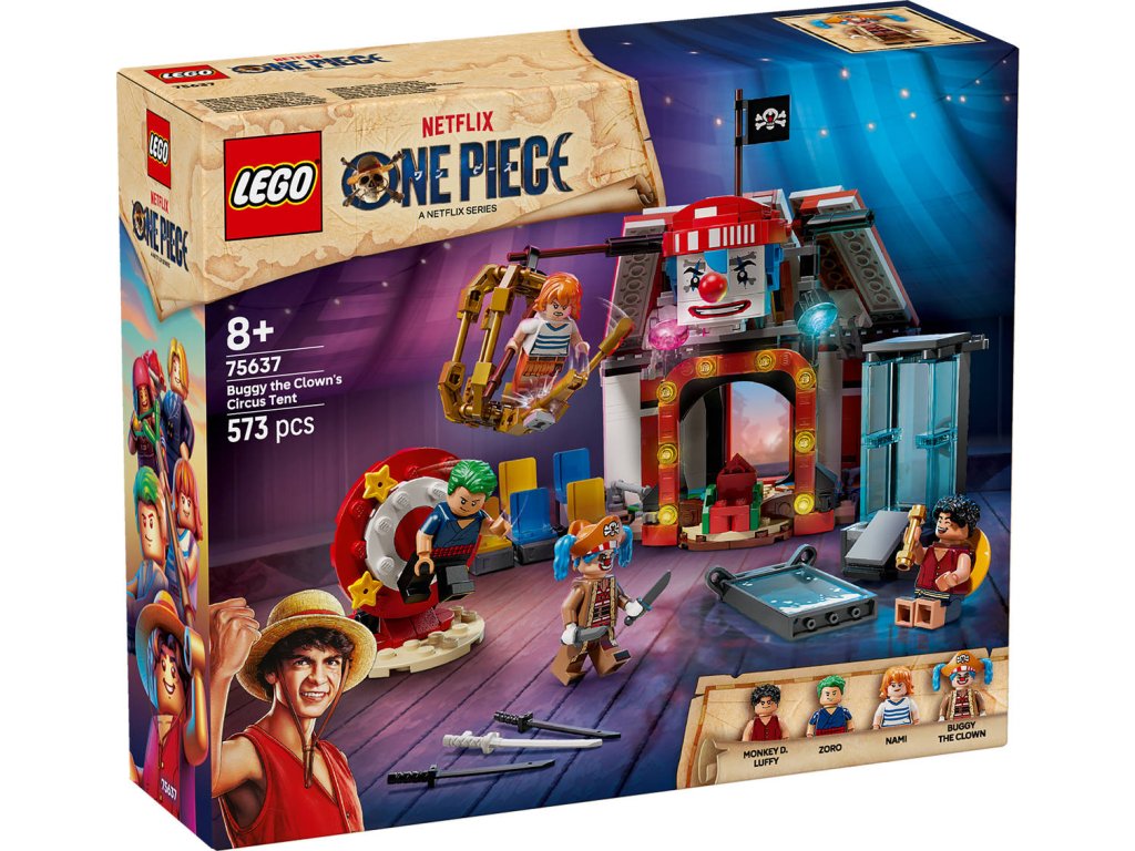 Děti se se stavebnicí Klaun Buggy a jeho cirkusový stan vydají na cirkusové dobrodružství jako ze seriálu ONE PIECE. Tato anime stavebnice LEGO pro kluky a holky od 8 let obsahuje spoustu doplňků, se kterými si děti přehrají oblíbené scény ze světa ONE PIECE a inspirují je k vymýšlení vlastních nápaditých dobrodružství. Součástí stavebnice jsou minifigurky Luffyho, Zora, Nami a pirátského kapitána Klauna Buggyho. Sestavitelný stan lze otočit a vytvořit tak větší hrací plochu s odnímatelnými částmi s židlemi a Buggyho trůnem. Součástí jsou také 3 cirkusové pasti, ze kterých musí hrdinové uniknout: nádrž na vodu, otáčející se terč a závěsná klec. Uvnitř stanu najdete krabice a sudy s dílky, ze kterých lze postavit menší verzi Buggyho. Nechybí spousta skvělých zbraní a doplňků, včetně 2 plakátů hledaných osob. Pro ještě větší porci digitální zábavy můžou stavitelé přibližovat a otáčet modely ve 3D a sledovat postup stavění pomocí intuitivní aplikace LEGO Builder. Stavebnice obsahuje 573 dílků.