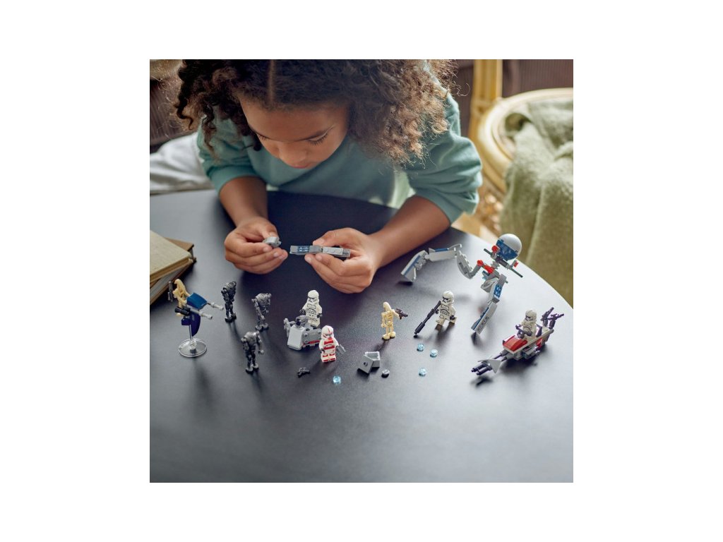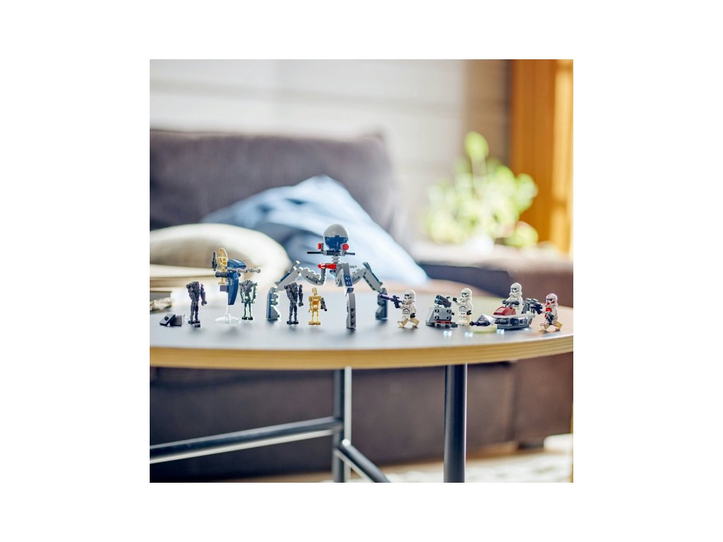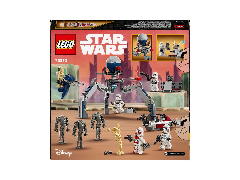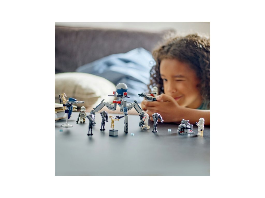 Zamiř na super bitevní droidy z obranného stanoviště a uchop štíty, které ti umožní bojovat zblízka. Kdo nakonec bitvu Klonových válek vyhraje? To už bude záležet jen a jen na tobě. Těšit se můžeš na spídrovou motorku s vystřelovači pro 2 klonové vojáky a sestavitelné vozidlo STAP spídr určeno pro bitevního droida. Nechybí ani tri-droid se 3 vystřelovači a obranné stanoviště s vystřelovačem. Čeká na tebe skvělá akce a zábava!