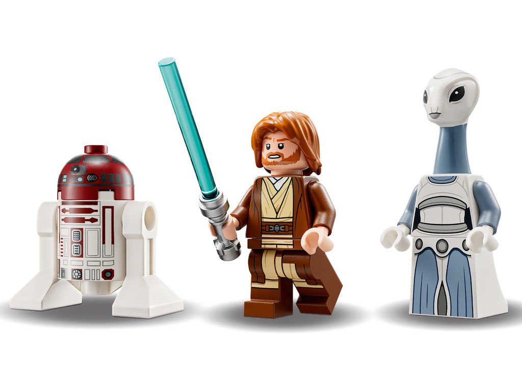 zatahovacím podvozkem, držáky na světelné meče a bodem pro připevnění hlavy droida R4-P17 na křídle. Součástí jsou také 2 minifigurky LEGO Star Wars™: Obi-Wan a vůbec poprvé obyvatelka planety Kamino