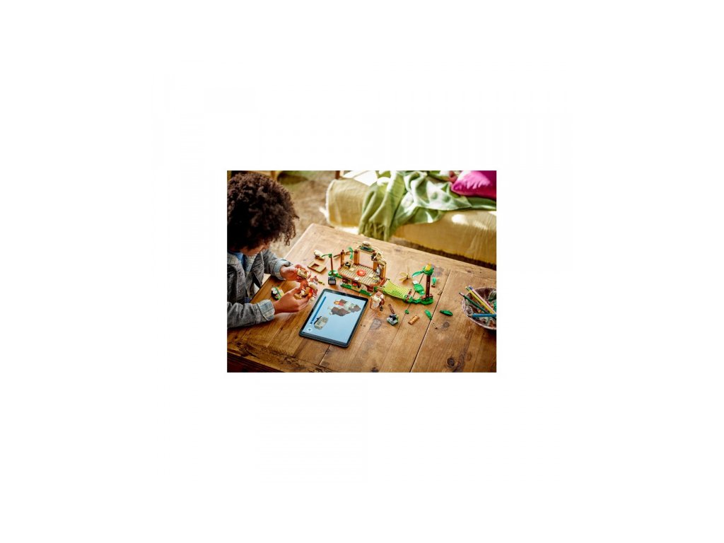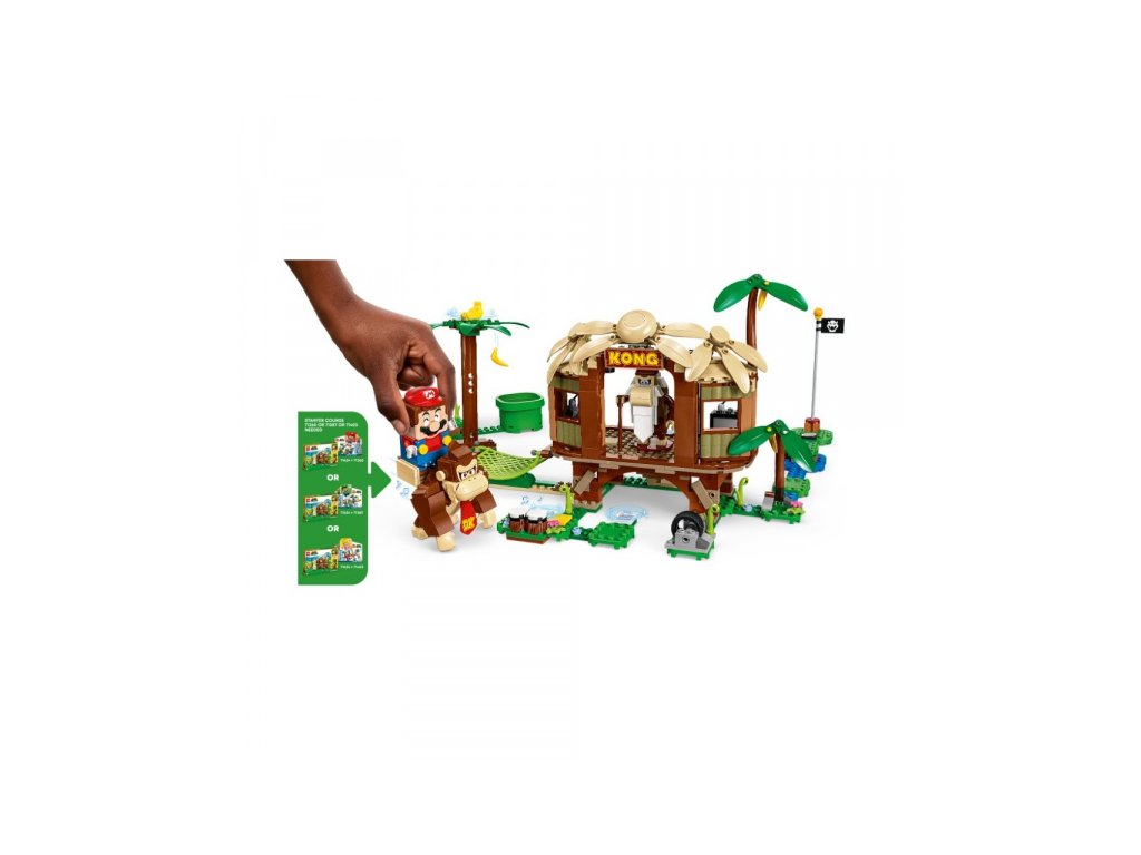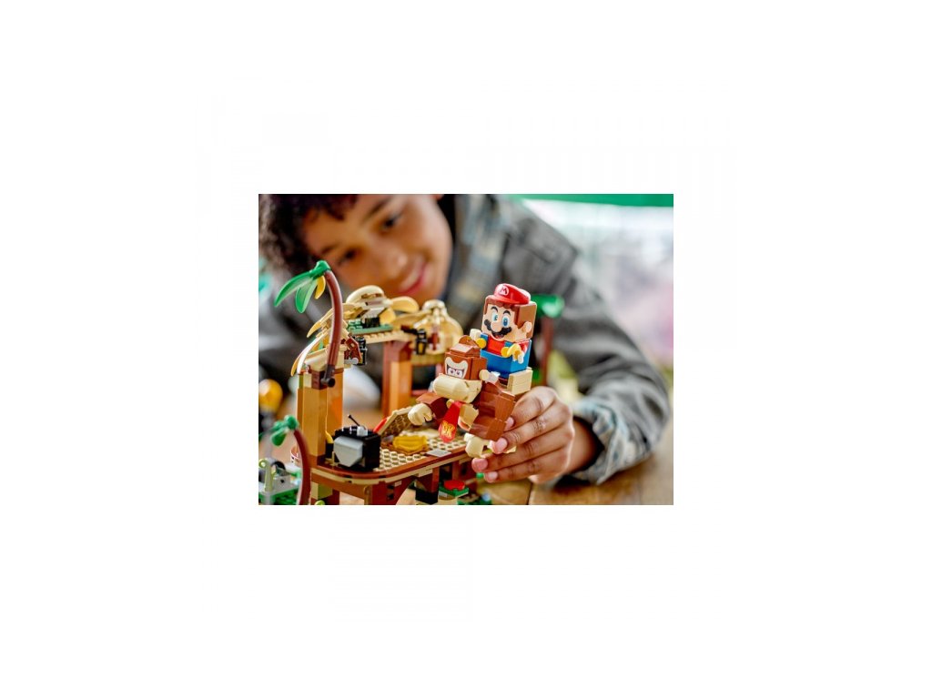 S rozšiřujícím setem Donkey Kongův dům na stromě si můžeš postavit barevnou úroveň džungle a přehrávat různé příběhy. Dům nabízí spoustu autentických detailů, jako je sestavitelný televizor, rádio či tajná skrýš. Pokus se najít i tajnou skrýš! Vyskoč Donkey Kongovi na záda a dupejte a rozbíjejte věci. Setřes z palmy banán a dej ho Donkey Kongovi, jistě si pochutná. Potom navštiv Cranky Konga, třeba od něj získáš pár mincí. Zahrát si můžeš také na bubny konga či si odpočinout v houpací síti. Čeká na tebe mnoho zábavy.