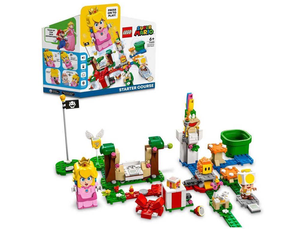 LEGO 71403 - Dobrodružství s Peach - startovací sada z produktové řady LEGO SUPER MARIO. Dětské plastové kostky v krabici. Hračka na baterie.