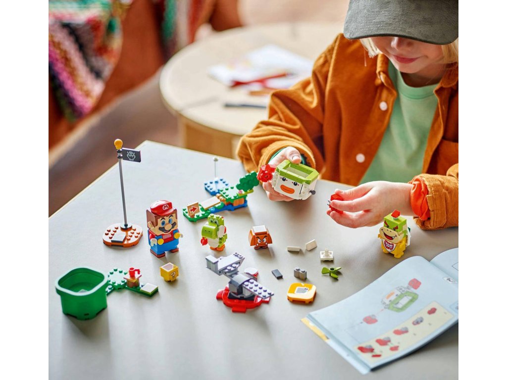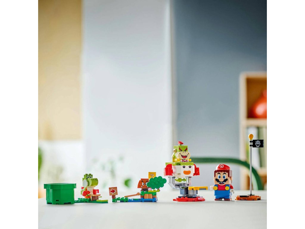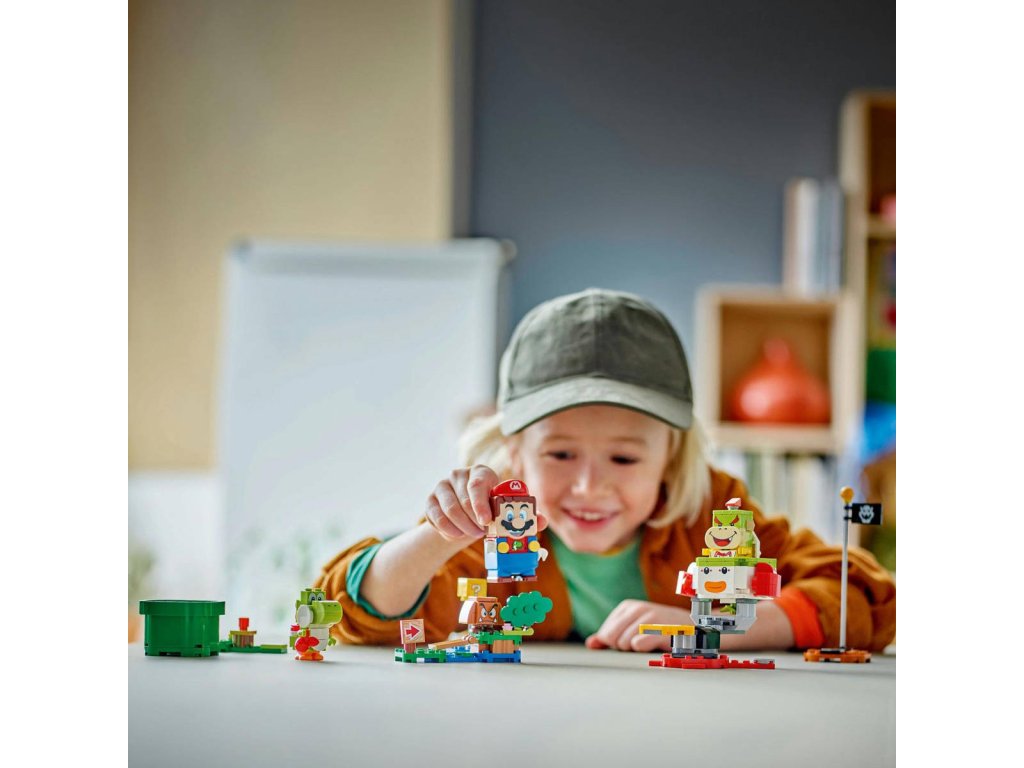 Tento set dětem poskytne hodiny dobrodružství s interaktivním LEGO Mariem, při kterých zažijí třeba bitvu o klaunské auto Bowsera Jr. Set je parádní dárek Nintendo pro kluky, holky a hráče od 6 let a obsahuje interaktivní figurku LEGO Maria a figurky Bowsera Jr., Goomby a Yoshiho, a k tomu navíc 3 modely prostředí. Cestujte od startovacího potrubí k cílové vlaječce, spouštějte digitální reakce od LEGO Maria a cestou sbírejte mince. Pozdravte Yoshiho, porazte Goombu,dupněte na akční kostku s otazníkem, svrhněte Bowsera Jr. a pak odfrčte v jeho Junior Clown Car. Návod na stavění najdete v krabici nebo v doprovodné aplikaci LEGO Super Mario, která slouží jako bezpečná platforma, kde mohou děti sdílet své výtvory, a najdete v ní také originální nápady na stavění a hraní. Rozšiřte herní možnosti tím, že přidáte modely a postavy z tohoto setu k ostatním z rozsáhlé řady LEGO Super Mario.