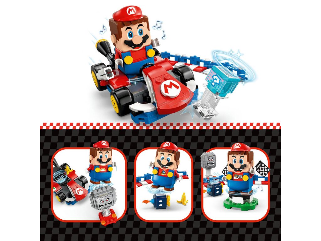Děti si s touto stavebnicí Mario Kart z kostek vytvoří vlastní závodní dráhu a společně s LEGO Mariem v motokáře Standard Kart se vydají na interaktivní závody. Fantastická stavebnice LEGO Super Mario pro kluky, holky a gamery od 7 letobsahuje interaktivní figurku LEGO Maria a Standard Kart s funkcí driftování a střílení krunýřů pro zábavné závodění a hraní. Součástí závodní dráhy je také startovní dráha, připojitelné bariéry, dopravní kužely a kruh vítězů. Řiďte Standard Kart s LEGO Mariem a aktivujte zvuky a vizuální efekty Mario Kart, získejte digitální odměny z krabice Item Box, porazte Bob-omba a Thwompa a sledujte, jak LEGO Mario reaguje na zelené a červené destičky LEGO. Objevte celou řadu stavebnic LEGO Super Mario: Mario Kart (prodávají se samostatně) a získejte další vozidla a postavy pro ještě větší porci zábavy. Návod na stavění najdete v krabici nebo v aplikaci LEGO Super Mario. Tato stavebnice obsahuje 278 dílků.