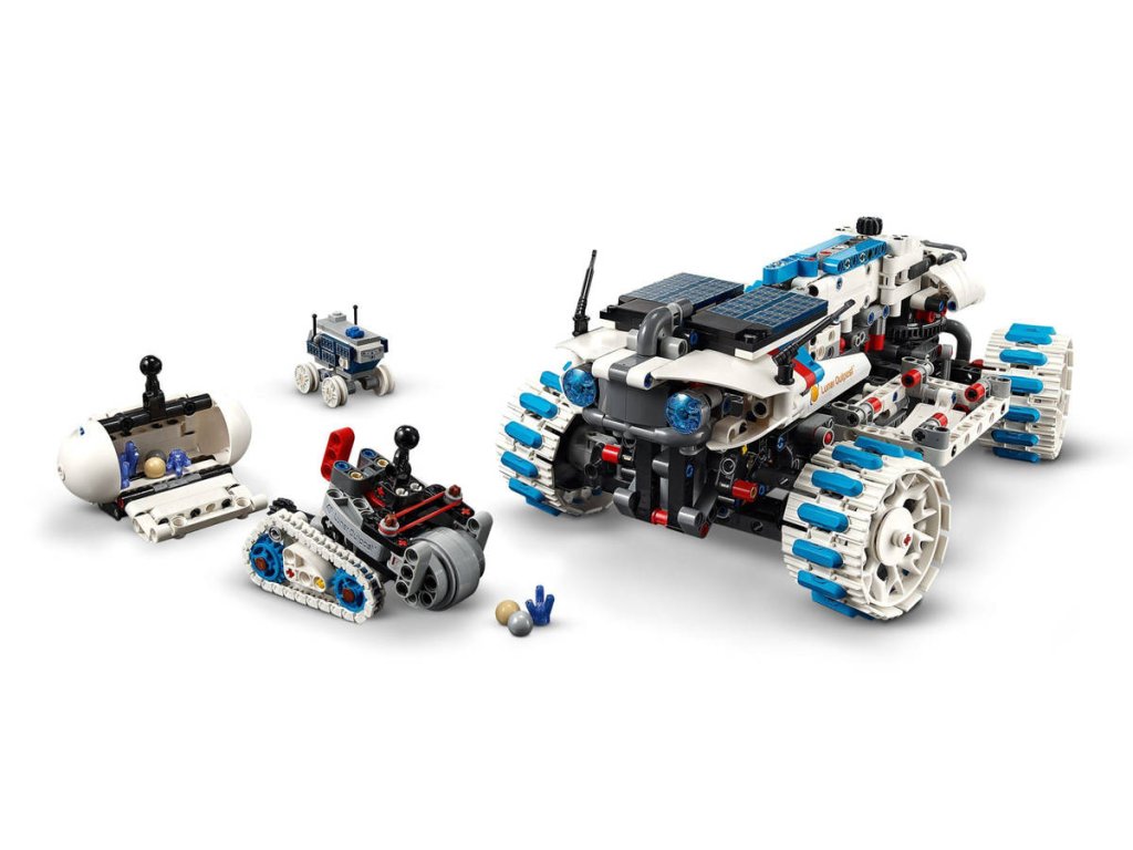 Několik vozidel a funkcí – Stavebnice obsahuje terénní lunární rover se speciálním odpružením, řízením 4 kol a výsuvnými solárními panely, menší těžební rover, kontejner na vzorky a MAPP rover