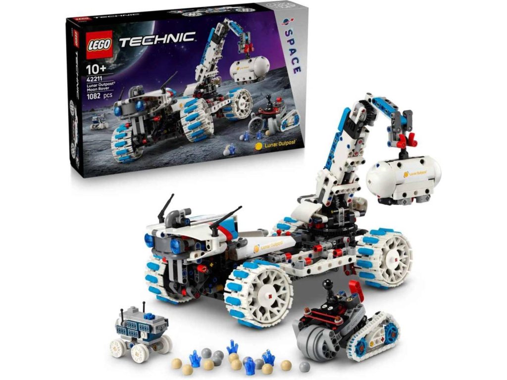 Stavebnice LEGO® Technic (42211) Lunární rover Lunar Outpost™ byla inspirována skutečnými rovery Lunar Outpost™, které umožňují návrat lidstva na Měsíc. Stavebnice obsahuje lunární rover, těžební rover a MAPP rover, které inspirují k nekonečným cestám a průzkumu.