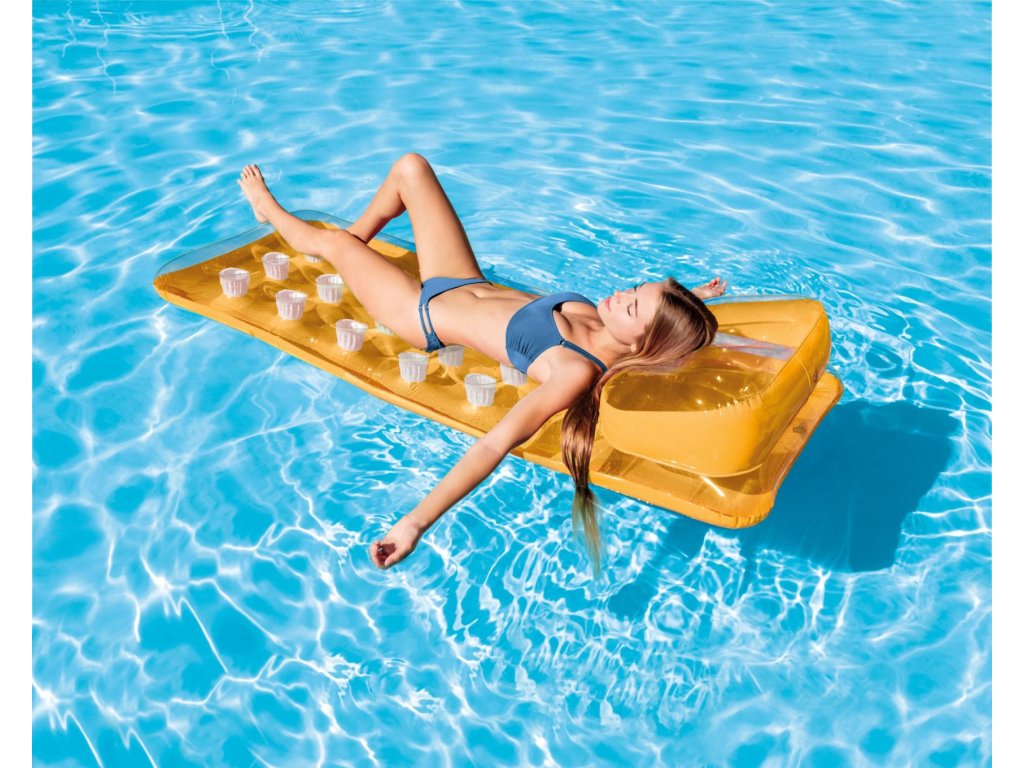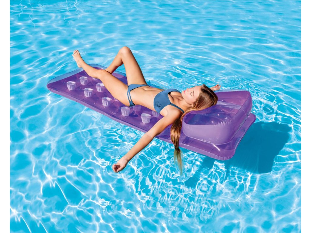 S opalovacím nafukovacím lehátkem na vodu s podhlavníkem si skvěle užijete horké letní dny v bazénu i na moři. Lehátko má 2 vzduchové komory a nafukovací polštář pod hlavou. Příjemnému lenošení na vodní hladině tak nic nebrání! Součástí balení je opravná sada. Vyrobeno z kvalitního vinylu (0,28 mm). Maximální nosnost 100 kg.