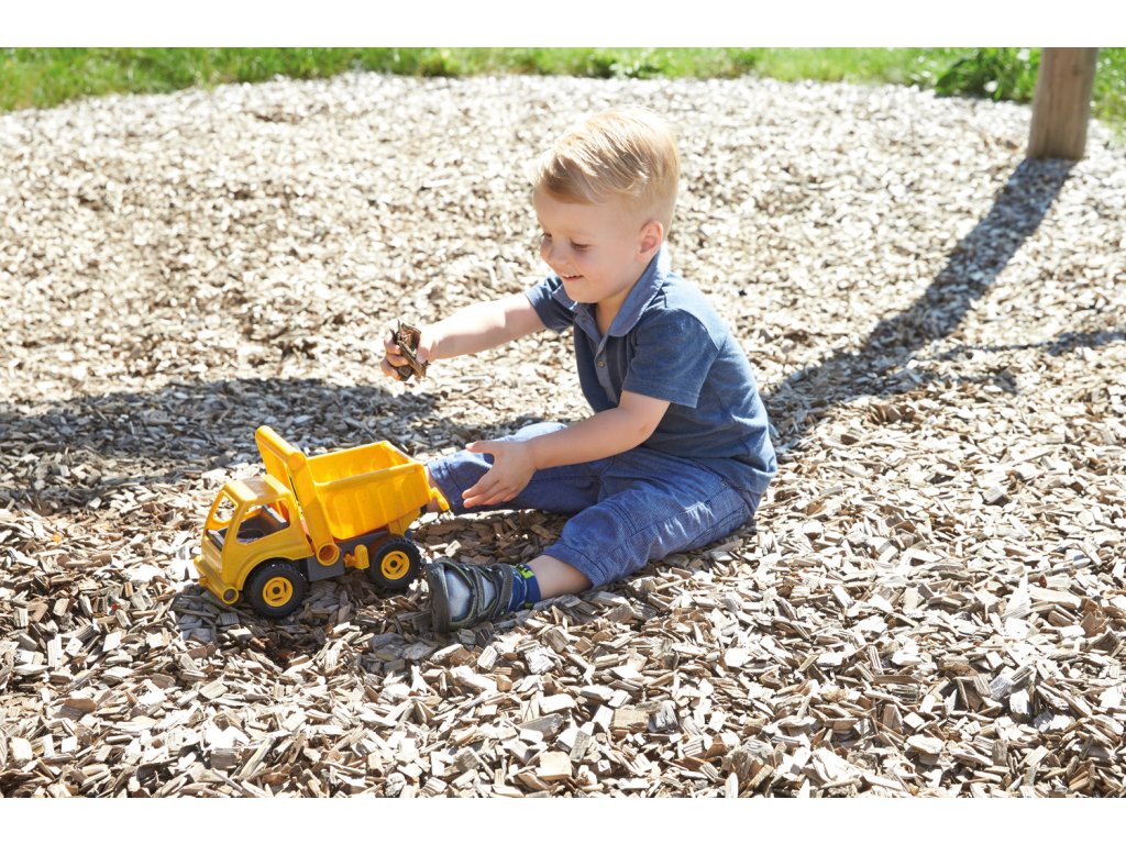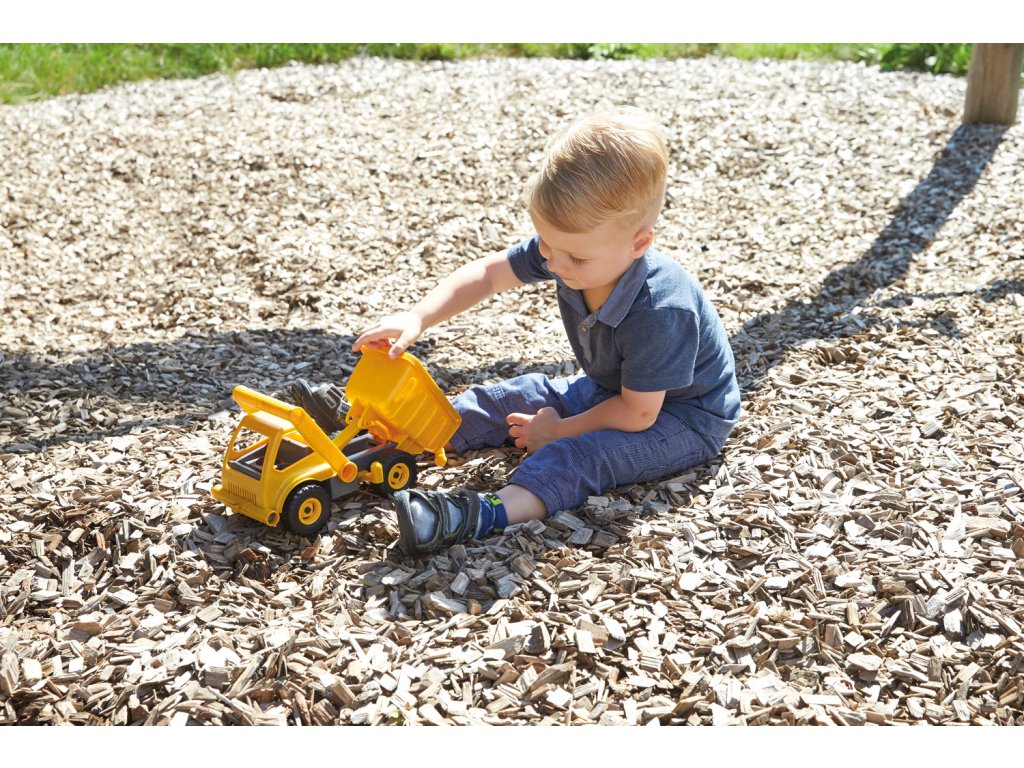 Pevný a robustní sklápěč vyrobený za pomocí recyklovaných materiálů a příměsi dřeva. Disponuje funkční mechanikou umožňující ovládání korby a odklopitelnou kabinou pro snadnou manipulaci ( řidič není součástí balení). Baleno v dekorované kartonové krabici. Hlavní vlastnosti: funkční mechanikaodklápěcí kabinavyrobeno z recyklovaného plastu