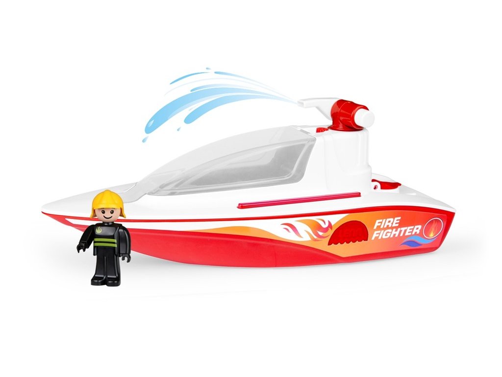 S touto hasičskou lodí si děti užijí spoustu zábavy ve vaně i v bazénu. Mezi její přednosti patří otevírací kabina se dvěma místy pro panáčky, funkční vodní dělo s mechanickou pumpou a provedení v sytých barvách. A navíc je k lodi možné připevnit a přepravovat malý katamarán (není součástí balení). Hlavní vlastnosti: vhodné k moři, do vany či bazénuotevírací kabinafunkční vodní pumpa1 figurka součástí balenízabaleno v ozdobné krabicipomáhá rozvíjet zručnost a koordinaci ruka - okopodporuje kreativitu a představivost