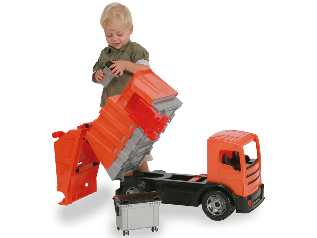 Plně multifunkční popelářské auto s odnímatelnou popelnicí a kontejnerem na kolečkách. Vyroben z kvalitního plastu. Lze použít jako odrážedlo o statické nosnost 100kg. Hlavní vlastnosti: plně mechanicky funkční s odnímatelnou popelnicí a kontejnerem vysoce kvalitní plast
