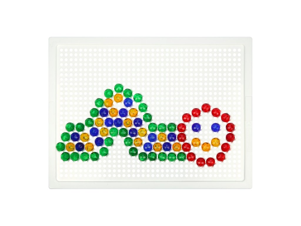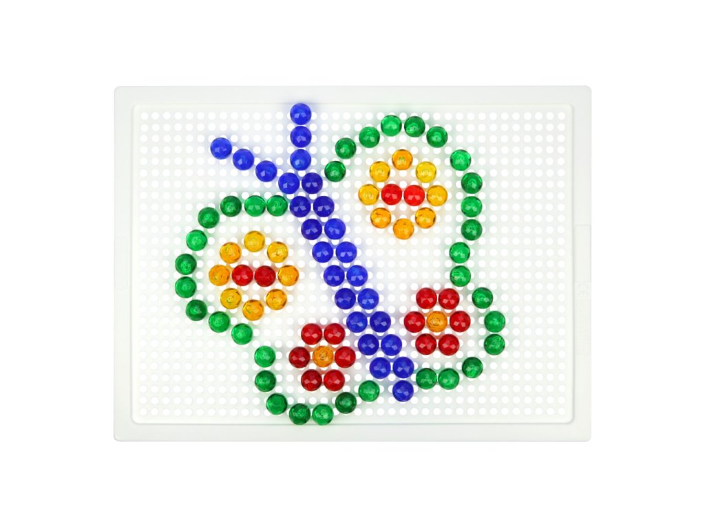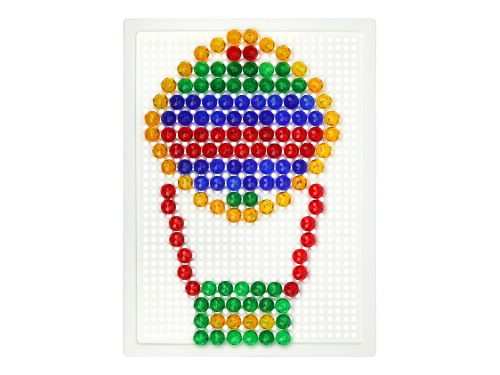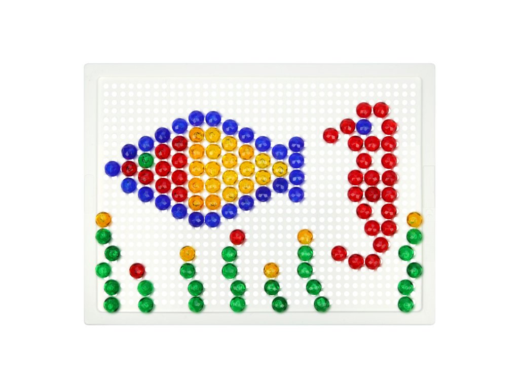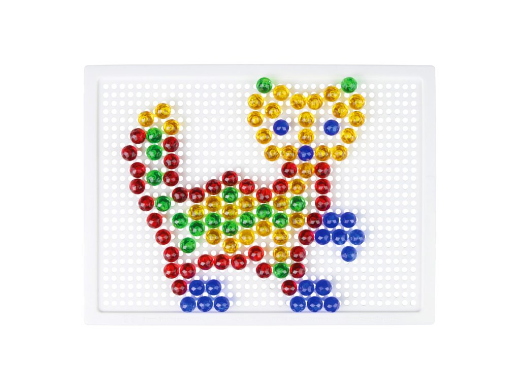 Nechejte se unést pestrými barvami kloboučků, jsou jako drahokamy! Pomocí mozaiky mohou děti rozvíjet svou fantazii, soustředění a jemnou motoriku. Souprava obsahuje desku a sadu malých průhledných kolíčků v plátěném pytlíku s motivem chobotničky. Vyrobeno z nezávadného a odolného plastu. Hlavní vlastnosti:deska o rozměrech 21×16 cm a 140 malých kolíčkůstřední obtížnostpraktické balení