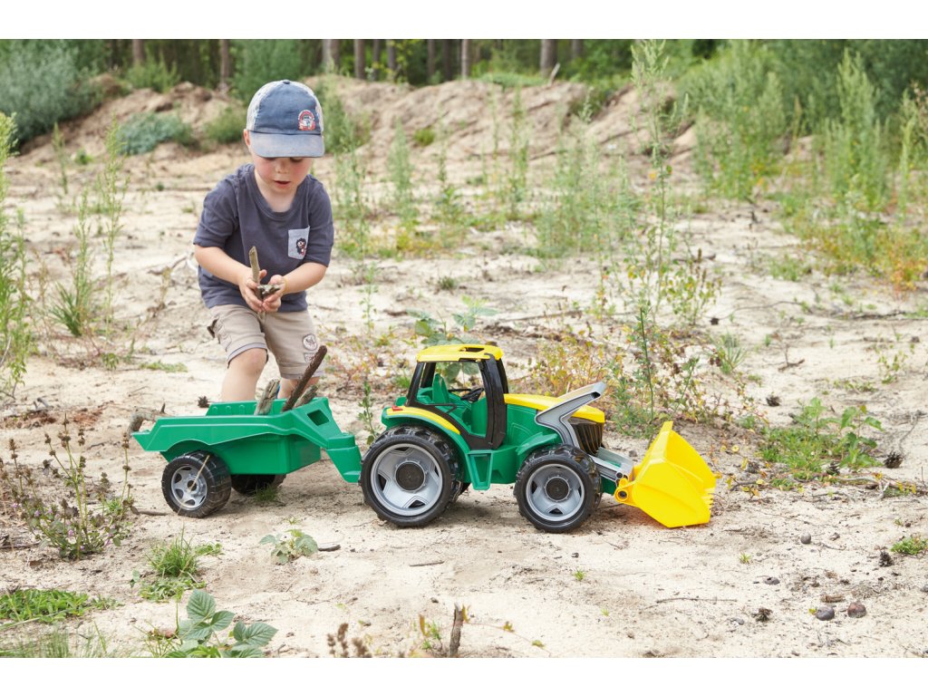Kvalitně zpracovaný traktor s nakládací lžíci a přívěsem byl navrhnut a vyroben tak, aby odpovídal požadovanému modernímu vzhledu, funkčnosti, odolnosti, kvalitnímu zpracování, maximální hrací hodnotě. Hlavní vlastnosti: splňuje požadavky EU na bezpečnost hračekvyrobeno z kvalitního, odolného plastupodporuje kreativitu a představivost