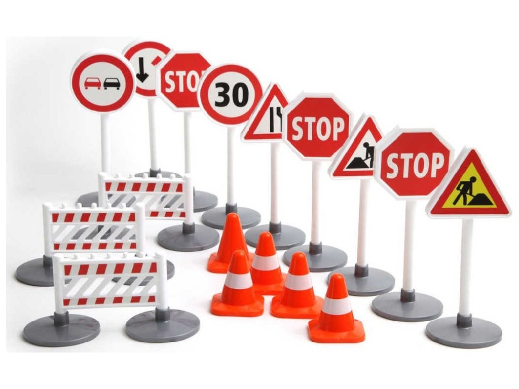 Sada velkých dopravních značek na dětské hřiště se stabilizačním podstavcem z plastu.