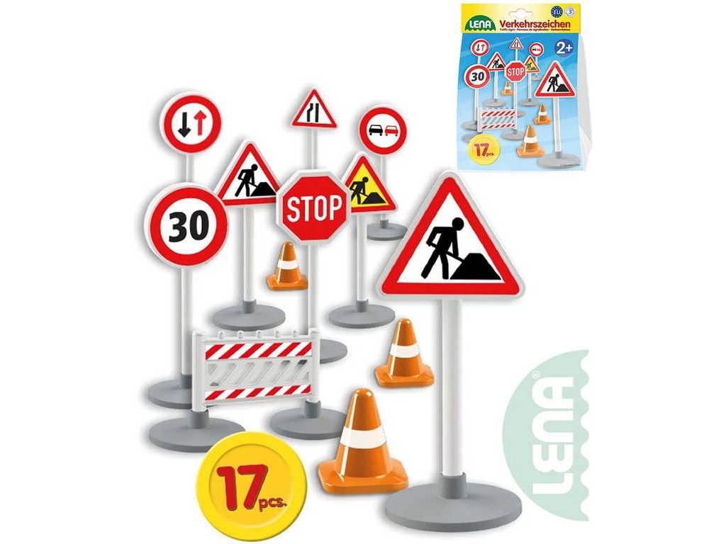 LENA Značky dopravní 16cm set s doplňky 17ks v krabici plast 04440
