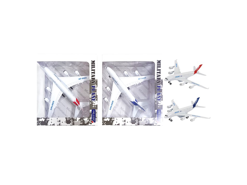 Letadlo AIRLINER 3806 - 1:300 - 2 druhy Vzlétněte do světa neomezených možností! Představujeme vám Letadlo AIRLINER 3806 - dokonalou repliku v měřítku 1:300, která přináší vzrušení z létání přímo do vašeho domova. Toto není jen obyčejná hračka, je to brána do světa dobrodružství a fantazie pro děti i dospělé. Proč je AIRLINER 3806 jedinečný? 1. Realistický design: Každý detail je pečlivě zpracován, aby věrně odrážel skutečné letadlo. 2. Kovová konstrukce: Robustní a odolná, vydrží i ty nejdivočejší lety. 3. Zpětné natahování: Jednoduché ovládání pro hodiny zábavy. 4. Světelné a zvukové efekty: Přináší letadlo k životu a stimuluje smysly. Technické specifikace: - Měřítko: 1:300 - Materiál: Kov - Baterie: 3x AG10 1,5V (součástí balení) - Funkce: Zpětné natahování, jízda vpřed, světelné a zvukové efekty Bezpečnost na prvním místě Naše letadlo je navrženo s ohledem na bezpečnost vašeho dítěte. Baterie jsou bezpečně uloženy a přístupné pouze dospělým osobám.
