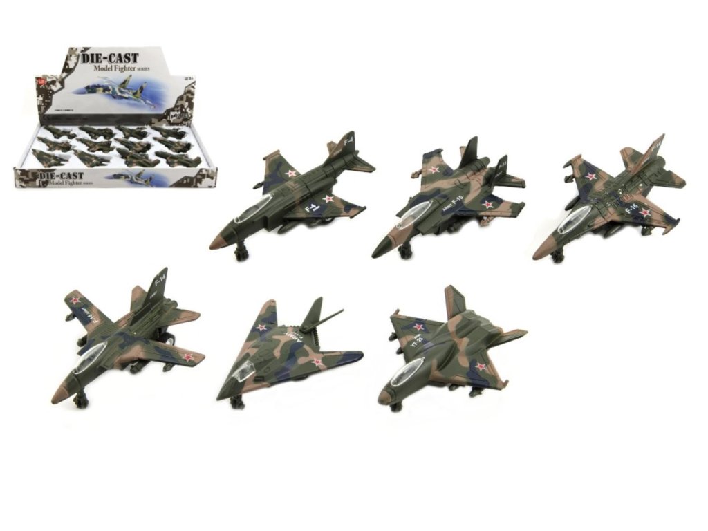 Letadlo/stíhačka vojenská kov/plast 9cm 12ks v boxu