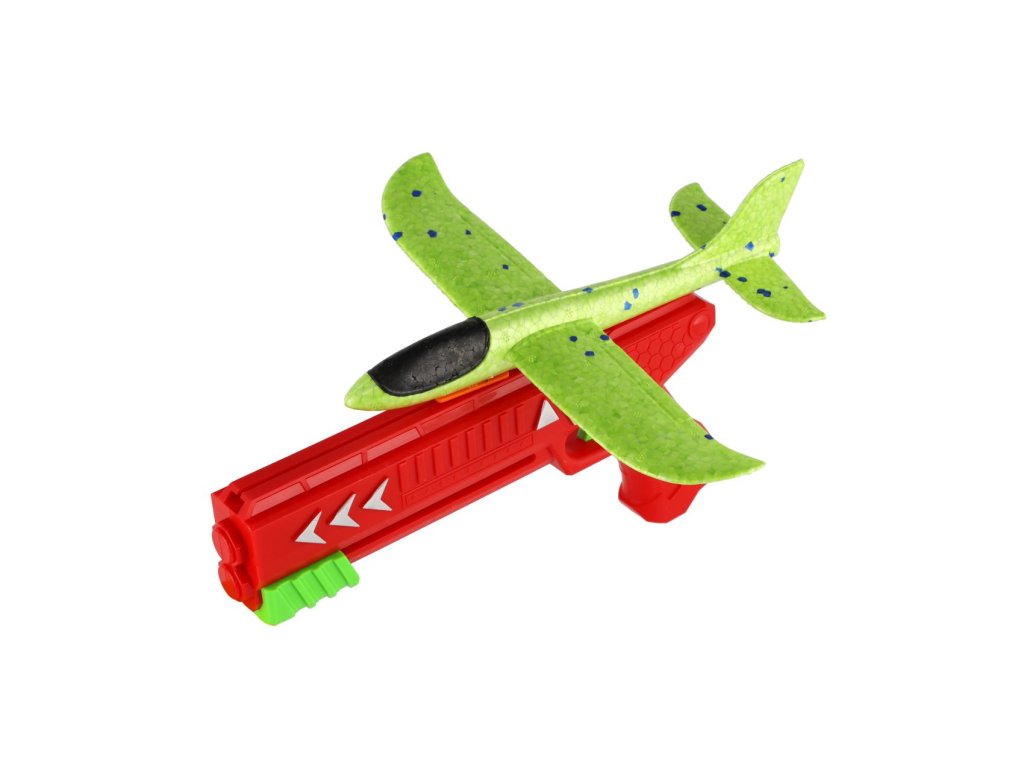 Zábavné vystřelovací letadlo z lehké pěny, které děti odpálí pomocí plastové pistole. Stačí nasadit letadlo na držák, stisknout spoušť a sledovat, jak vystřelí do vzduchu! Díky lehkému materiálu letadlo krásně plachtí a je bezpečné i pro menší děti.
