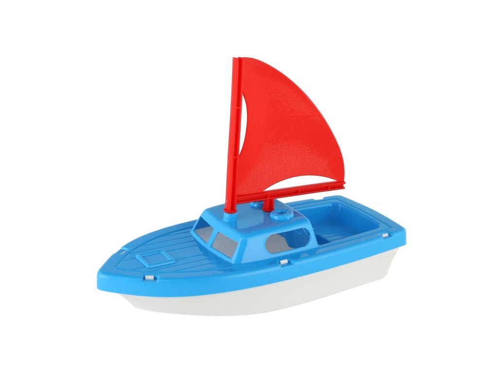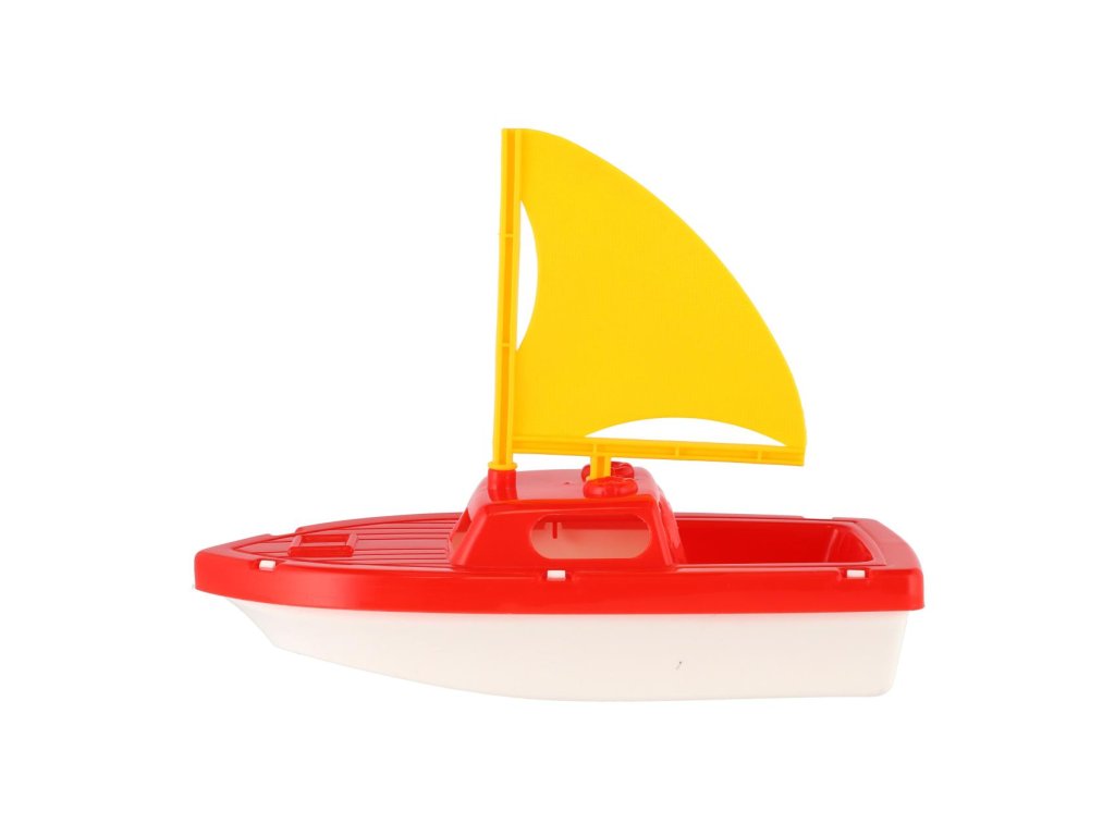 Zábava do vany, bazénu i na dovolenou. Barevná plastová plachetnice je ideální hračka pro malé námořníky. Stačí ji položit na hladinu vody a pustit se do vodních dobrodružství. Dostupná ve dvou veselých barevných variantách – červená s žlutou plachtou nebo modrá s červenou plachtou.