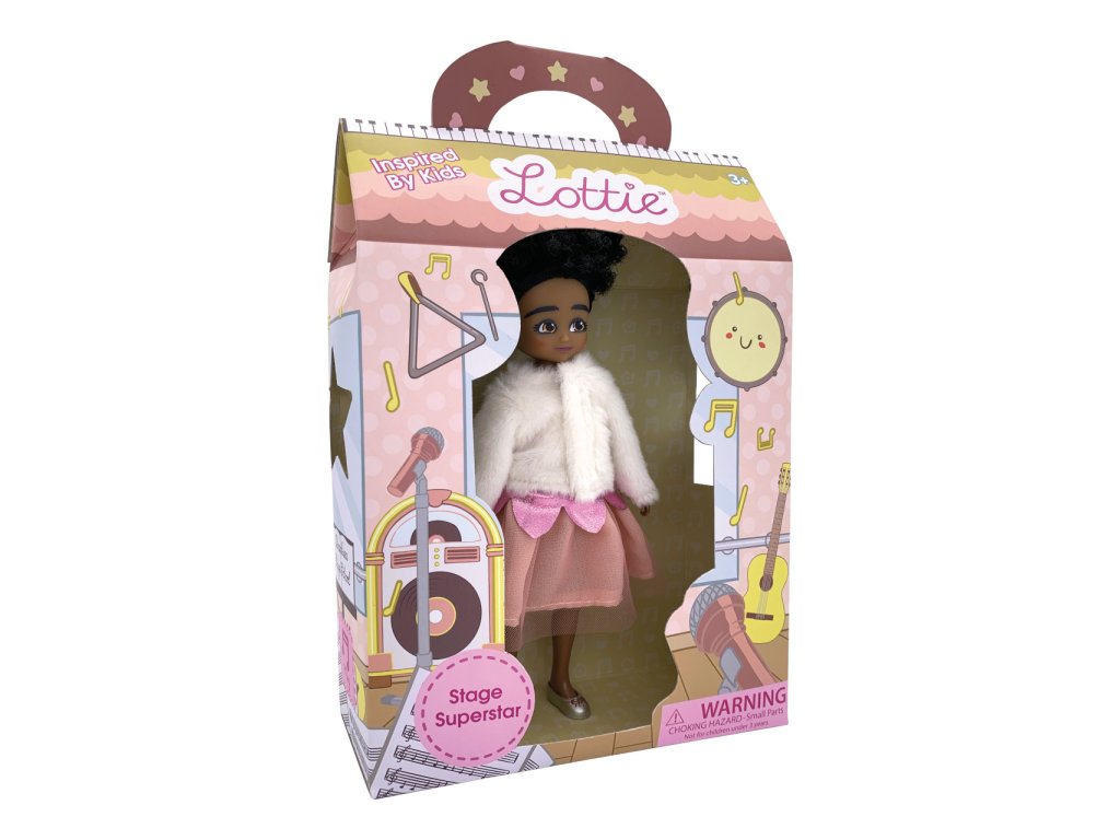 Meg, nejlepší kamarádka Lottie, je velmi talentovanou zpěvačkou a nebojí se vystupování. Už se nemůže dočkat až se předvede svým přátelům a po vystoupení si s nimi vyrazí na večírek. Oblékla se proto zvláště šik a na pódiu i mimo něj určitě oslnivě zazáří. Jako ostatní panenky z oceňované kolekce Lottie je i tato realistická a snaží se děti naučit upřímnému pohledu na svět. Lottie jsou navrženy a zvláště uzpůsobeny malým dětským ručkám, mají pohyblivá kolena a jsou vyrobeny z prémiového měkkého vinylu a nylonu, bez použití ftalátů. Každá panenka je dodávána v atraktivní barevné kartónové taštičce s plastovým průhledem a uchem. Hlavní vlastnosti:kloubová panenka s pohyblivými koleny, perfektní pro představivou hruprémiové nylonové vlasy jsou hebké na dotek a nezamotávají sepanenka z vinylu bez obsahu ftalátů, měkká na dotekpanenka má snímatelné boty a stojí samostatněčerné vlasy a hnědé očimilované všemi dětmi, vhodné od 3 letmalá a roztomilá panenka ve velikosti 18 cm Balení obsahuje:Meghan, pódiová umělkyně, vybavená bílým kožichem, třpytivými růžovými šatičkami, stříbrnými střevíčky, stříbrnou kabelkou a čelenkou ve vlasechstojan s mikrofonem