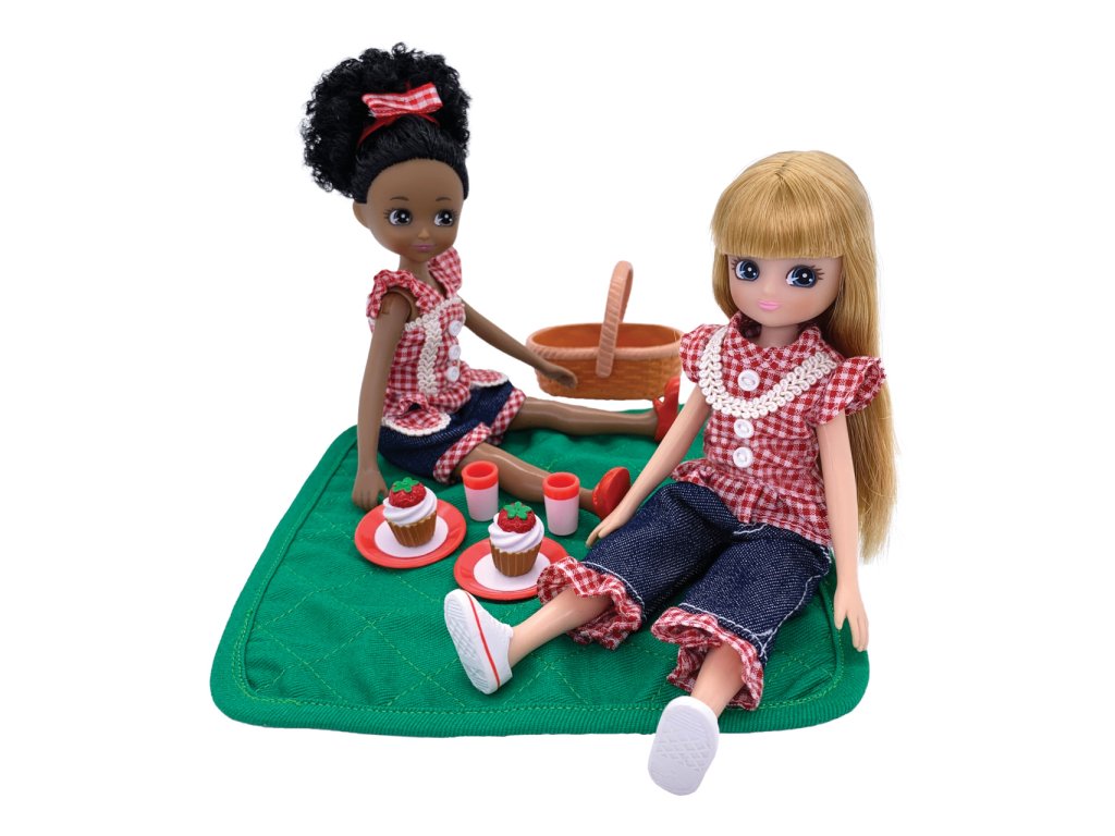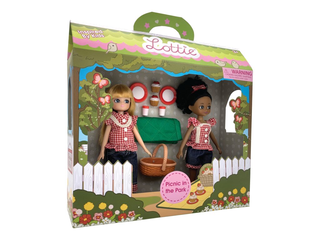 Nejlepší kamarádky, Lottie a Meghan, míří do parku na zábavný piknik. Při té příležitosti se pohodlně, zároveň ale elegantně oblékly tak, aby každý hned věděl, že patří k sobě. Usadí se pohodlně na zelené dečce a dopřejí si něco dobrého na zub, dortík a ledový čaj. Jako ostatní panenky z oceňované kolekce Lottie jsou i tyto realistické a snaží se děti naučit upřímnému pohledu na svět. Lottie jsou navrženy a zvláště uzpůsobeny malým dětským ručkám, mají pohyblivá kolena a jsou vyrobeny z prémiového měkkého vinylu a nylonu, bez použití ftalátů. Panenky jsou dodávány v atraktivní barevné kartónové taštičce s plastovým průhledem a uchem. Hlavní vlastnosti:kloubové panenky s pohyblivými koleny, perfektní pro představivou hruprémiové nylonové vlasy jsou hebké na dotek a nezamotávají sepanenky z vinylu bez obsahu ftalátů, měkké na dotekpanenky mají snímatelné boty a stojí samostatněblonďaté a černé vlasy, modré a hnědé očimilované všemi dětmi, vhodné od 3 letmalé a roztomilé panenky ve velikosti 18 cm Balení obsahuje:Lottie, veselá kamarádka, vybavená kostkovaným topem, krátkými džínovými kalhotami a bílými teniskamiMeghan, starostlivá kamarádka, vybavená kostkovaným topem, džinovými kraťasy, červenými balerínkami a stuhou ve vlasechkošík, dečka, 2 talířky, 2 dortíky a 2 šálky