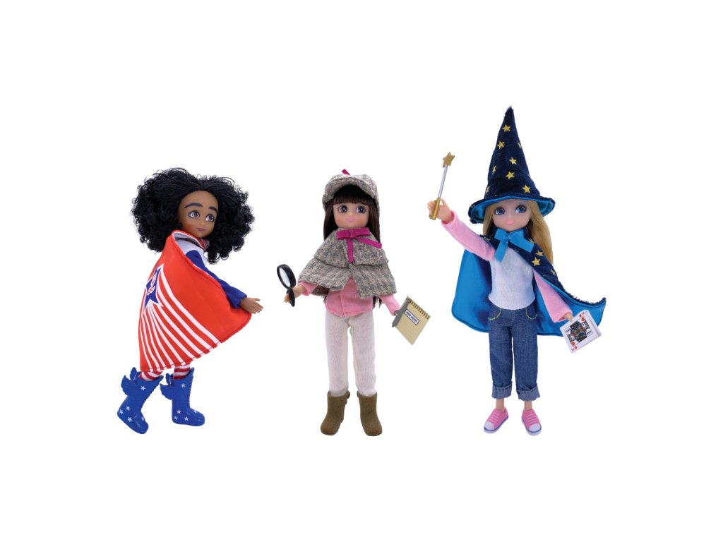 Chystáte večírek, nebo budete hrát divadlo? Překvapte přítomné originálním kostýmem! Vžijte se do role a nechejte pracovat svou fantazii, staňte se funky kandidátkou na prezidenta, slavnou detektivkou, které neunikne žádná drobnost, nebo kouzelnicí mistrně ovládající karetní triky. Exkluzivní balení třech různých outfitů nadchne každou fanynku originální zábavy. Všechny součásti jsou kvalitně zpracované, vyvedené pečlivě, s citem pro každičký detail. Souprava je balena v recyklovatelném obalu potištěném přírodními inkousty. Hlavní vlastnosti:určeno pro panenky Lottienápadité a detailní zpracování Balení obsahuje:model budoucí prezidentky zahrnuje modro‑bílé tričko, modré manšestrové kraťasy, pruhované červeno‑bílé punčocháče, vysoké modré boty a červený plášť s emblémemmodel detektivky zahrnuje károvaný hnědo‑zelený kabátek zdobený růžovou mašlí a stejně laděnou čepici, růžovou košili, béžové kalhoty, hnědé boty, poznámkový blok, pero a nálepky s otisky prstůmodel kouzelnice zahrnuje růžovo‑bílé tričko, džínové kalhoty, modrý plášť zdobený hvězdami a stejně laděný vysoký klobouk, růžové tenisky, kouzelnickou hůlku a balíček karet