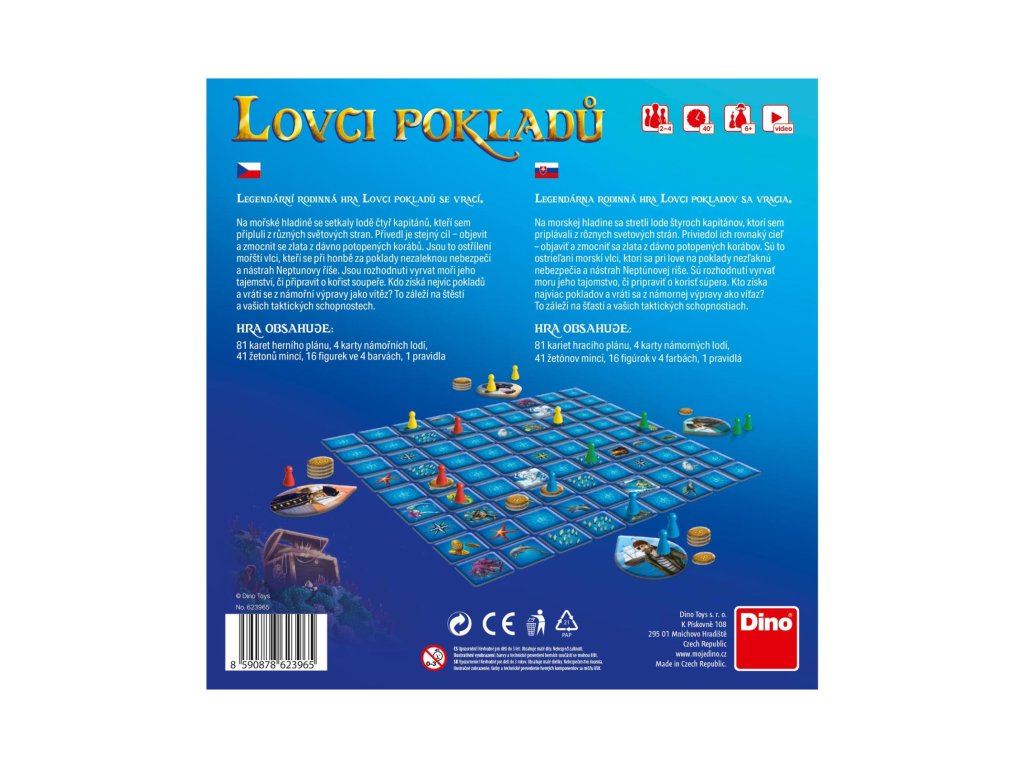 Kdy naposled jste našli opravdový poklad? Vašim dětem se tenhle zázrak může dít každý den. Hra Lovci pokladů je určena pro 2 až 4 hráče a pochopí ji už žáčci první třídy. Během hry budou za pomoci svých námořníků hledat, přepravovat a také chránit na své lodi co největší poklad. V tom mu mohou pomáhat mořští koníci nebo bránit třeba zlí žraloci. Ještě větší moc pak má mořská panna nebo vládce moří, Neptun.