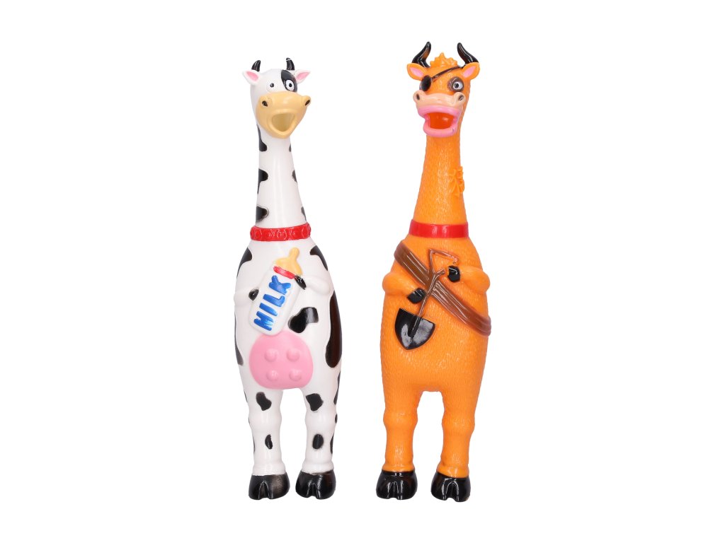 Mačkací kravička. Velikost 32 cm. 12 ks display box. 2 varianty - bílá, oranžová.