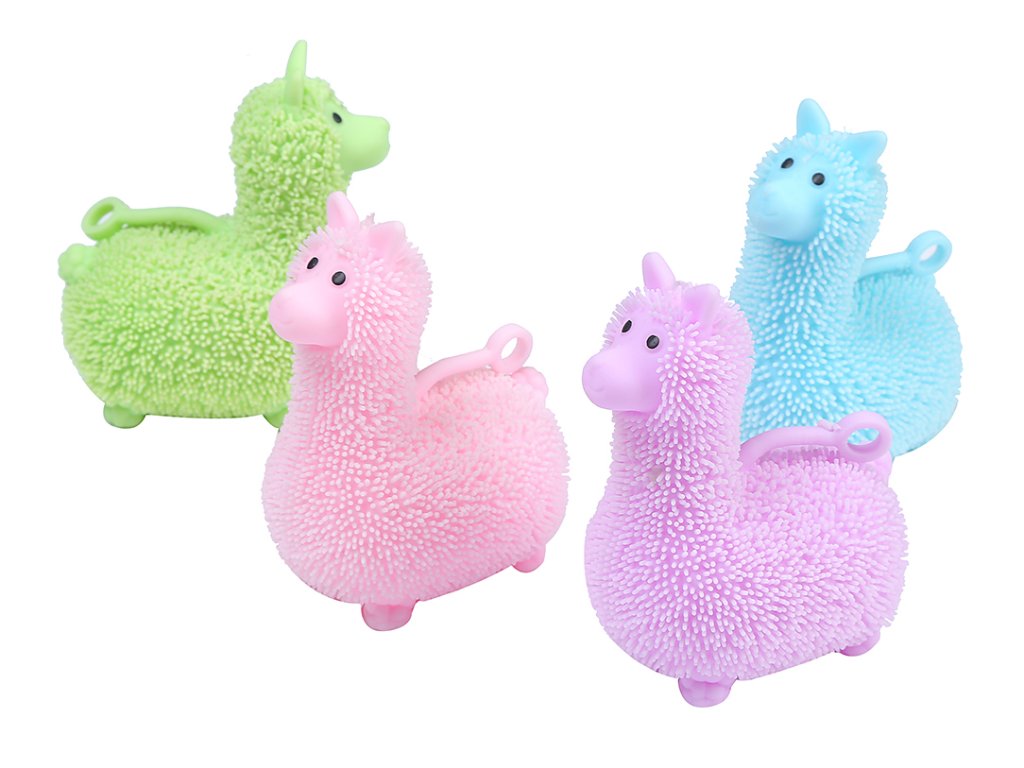 Mačkací lama. Velikost 12x10 cm. Display box - 12 ks. Více barevných variant. Světelné efekty. 3xAG3 baterie zabudované, nelze měnit.