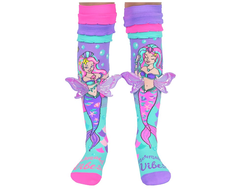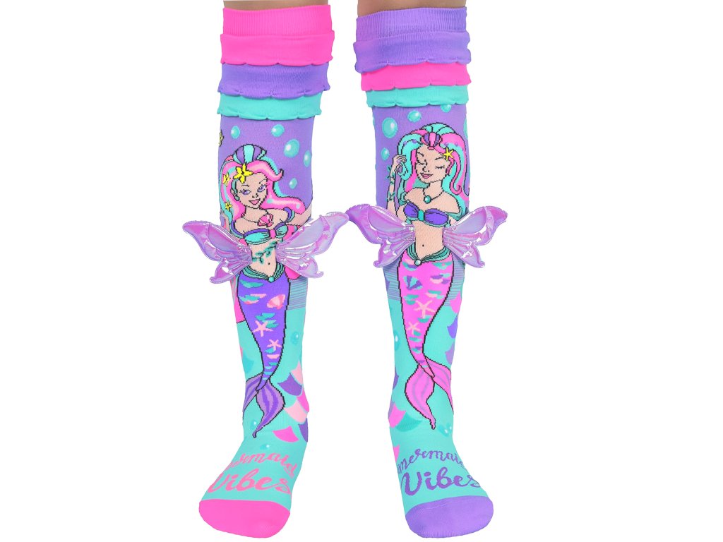 Staňte se mořskou pannou pod mořem s polibky hvězdicemi a tajnými mušlemi, které můžete vidět s těmito ponožkami Mermaid Vibes! S volánky a 3D křídly – jsou zábavné a určitě se v nich budete cítit jako mořská panna. Takže si nasaďte své funky hloupé ponožky a pojďme se společně ponořit do světa kouzel a dobrodružství. Jsou skvělé pro bláznivý ponožkový den, zvláštní příležitosti, narozeniny a dodávají vašemu dni kouzlo s každým vaším krokem. Ponožky MADMIA jsou vyrobeny z vysoce kvalitních materiálů a jsou měkké, pohodlné a navržené tak, aby vydržely. Dodává se v dětských i dospělých velikostech Tabulka velikostí Velikost ponožek pro děti a dospělé Naše nejoblíbenější velikost. Tyto ponožky jsou „univerzální velikosti“ a jsou vhodné pro věk 6 - 99 let. Mohou sedět dospělým, ale doporučujeme až do velikosti bot EU 41 ekvivalentní dámské velikosti 8/9 AU. Upozorňujeme, že mají omezenou pružnost kolem větších nebo svalnatá lýtka. Ponožky s méně frekventovanými vzory, jako jsou (Ponožky mořské panny, Liquorice Bows, Mořská panna volánky, Noty, Neon, Rainbow Tie Dye, Magic Frills, Ice Cream, Tie Dye) mají lepší pružnost a vřele doporučujeme tyto vzory pro dospělé, aby se předešlo problémům s natahováním. .