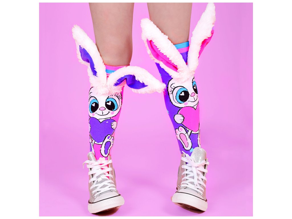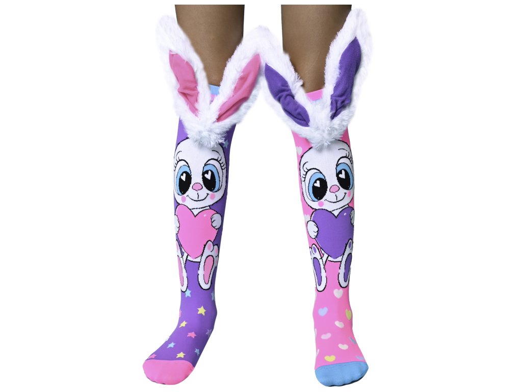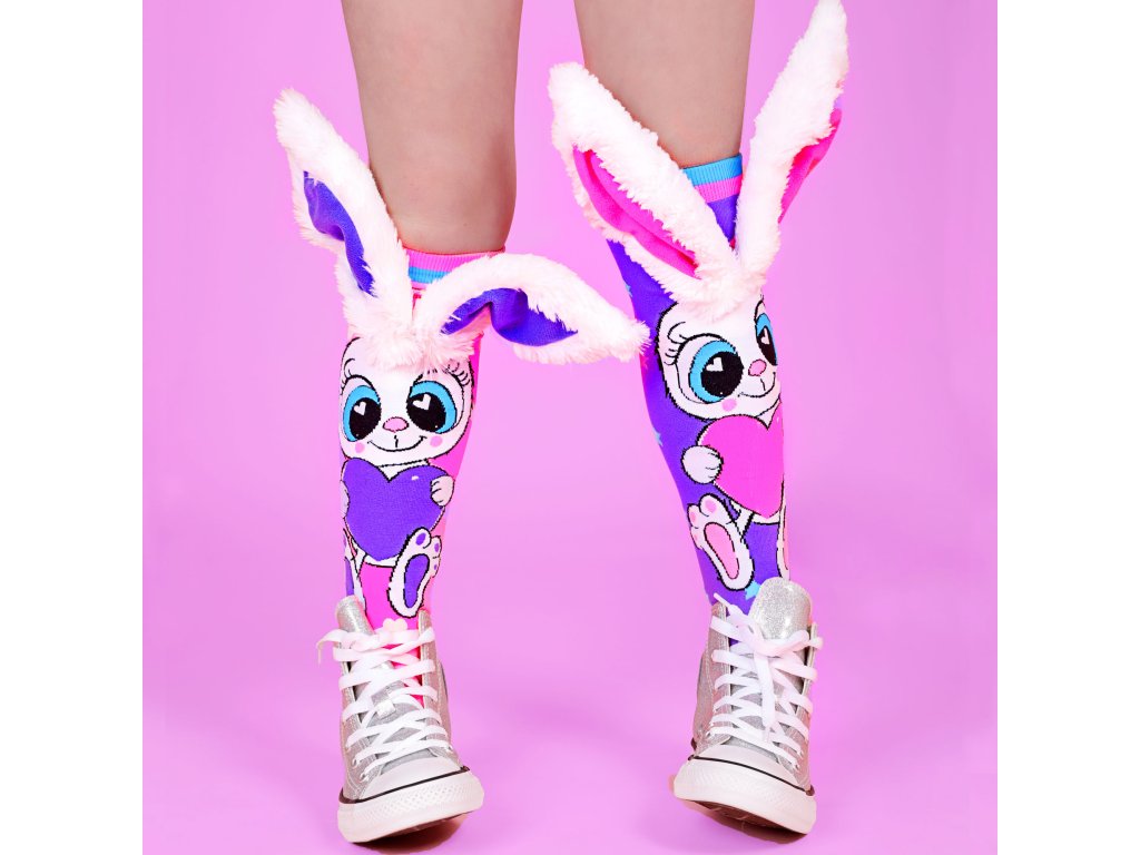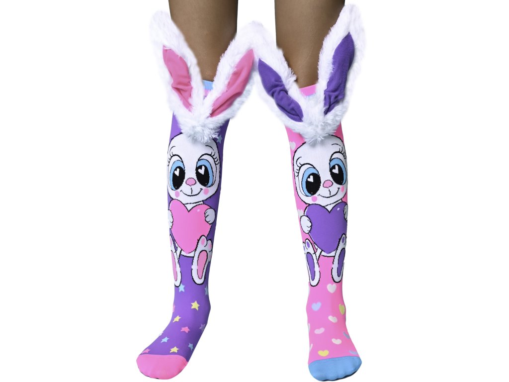 Připravte se na rock a hop s našimi barevnými a hloupými zajíčkovými ponožkami! Tyto zábavné ponožky po kolena jsou ideální na Velikonoce a obsahují nádherná malá srdíčka a hvězdičky spolu s velkými 3D rozkošnými načechranými ušima, díky kterým vyčníváte z davu. Ideální pro bláznivý ponožkový den, zvláštní příležitosti, narozeniny a přidání zábavy do vašeho dne. Věděli jste: Funny Bunny Socks svítí pod UV světlem? Ponožky MADMIA jsou vyrobeny z vysoce kvalitních materiálů a jsou měkké, pohodlné a navržené tak, aby vydržely. Dodává se v dětských i dospělých velikostech Tabulka velikostí Velikost ponožek pro děti a dospělé Naše nejoblíbenější velikost. Tyto ponožky jsou „univerzální velikosti“ a jsou vhodné pro věk 6 - 99 let. Mohou sedět dospělým, ale doporučujeme až do velikosti bot EU 41 ekvivalentní dámské velikosti 8/9 AU. Upozorňujeme, že mají omezenou pružnost kolem větších nebo svalnatá lýtka. Ponožky s méně frekventovanými vzory, jako jsou (Ponožky mořské panny, Liquorice Bows, Mořská panna volánky, Noty, Neon, Rainbow Tie Dye, Magic Frills, Ice Cream, Tie Dye) mají lepší pružnost a vřele doporučujeme tyto vzory pro dospělé, aby se předešlo problémům s natahováním. .