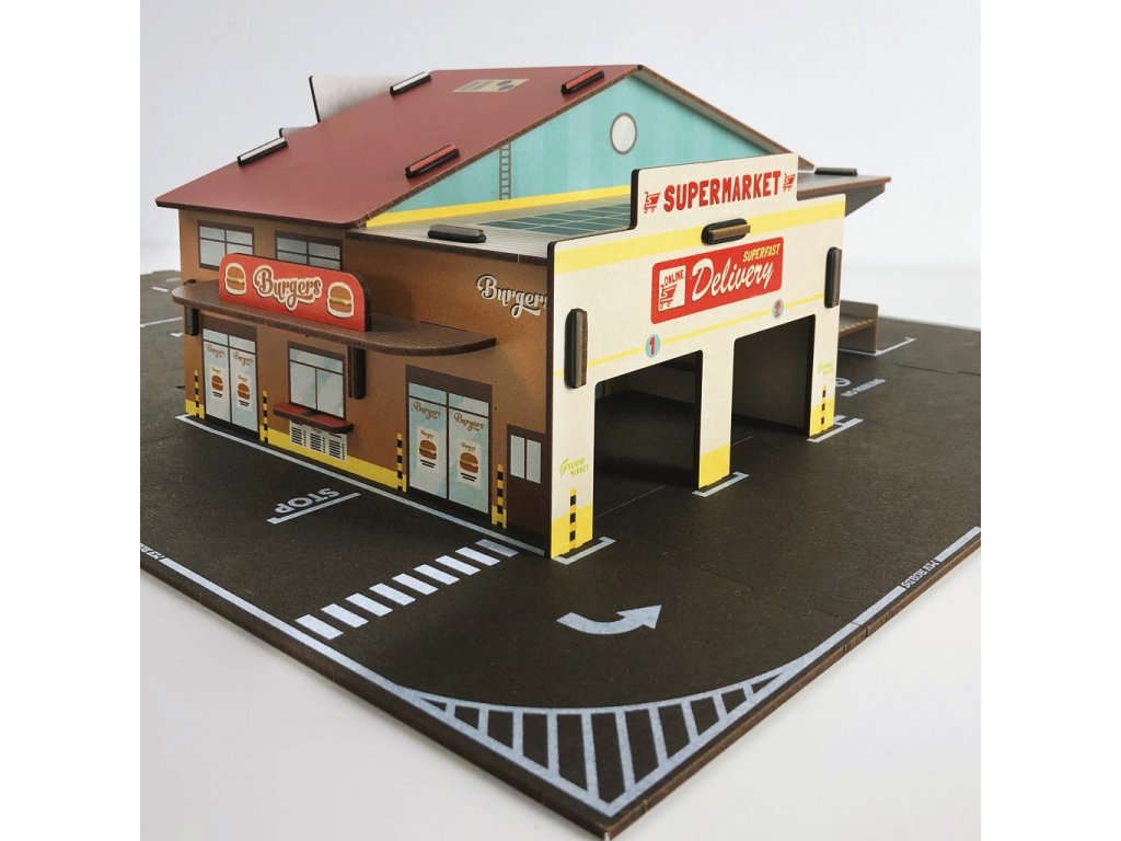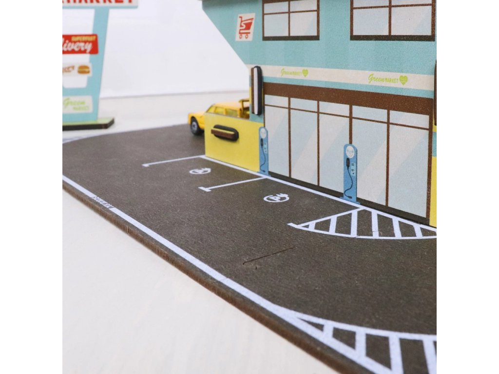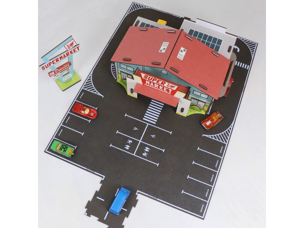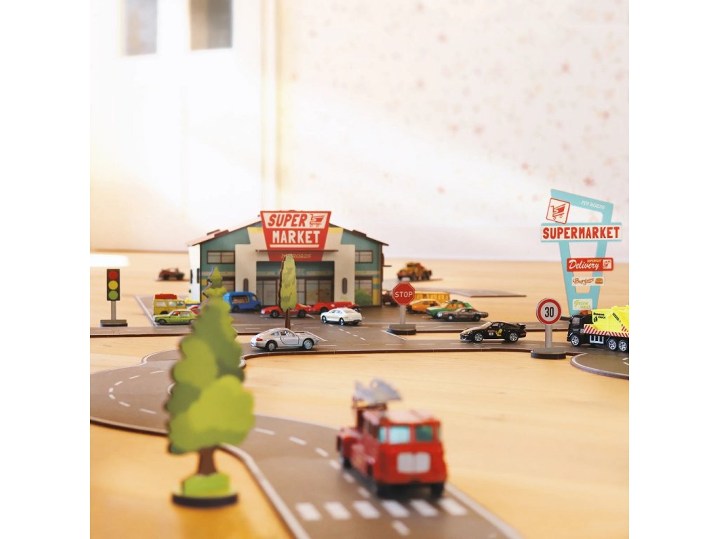 MyRoads je k životnímu prostředí šetrná hra z udržitelného, přírodního dřeva z odpovědných zdrojů. Odolné dětské silnice se snadno spojují a jsou vyrobeny německou společností Werkhaus. Spolu s MyRoads Starter set (zahrnující všechny druhy silnic), naleznete v této řadě spoustu doplňkových sad, jenž můžete jakkoli vzájemně kombinovat. Včetně budovy supermarketu/restaurace obsahuje tato 38dílná sada také parkovací místa, výjezd a vjezd a mnoho dalších krásných detailů pro realistický herní zážitek. Poznámka: Jelikož jde o výrobky z přírodního dřeva mohou vykazovat drobné barevné odchylky. Autíčka nejsou součástí balení. Hlavní vlastnosti: vintage design a detailní provedeníkompatibilní se všemi produkty řady MyRoadspodporuje představivost, obratnost a koordinacivyrobeno z udržitelných a zodpovědně získaných přírodních materiálů
