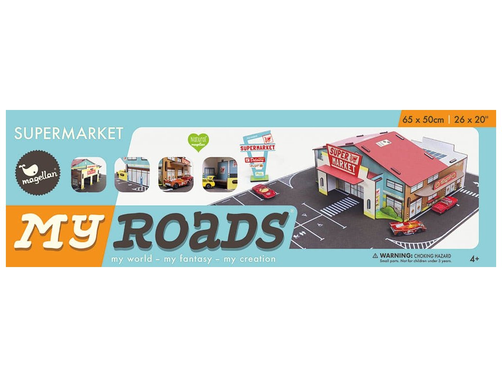 MyRoads je k životnímu prostředí šetrná hra z udržitelného, přírodního dřeva z odpovědných zdrojů. Odolné dětské silnice se snadno spojují a jsou vyrobeny německou společností Werkhaus. Spolu s MyRoads Starter set (zahrnující všechny druhy silnic), naleznete v této řadě spoustu doplňkových sad, jenž můžete jakkoli vzájemně kombinovat. Včetně budovy supermarketu/restaurace obsahuje tato 38dílná sada také parkovací místa, výjezd a vjezd a mnoho dalších krásných detailů pro realistický herní zážitek. Poznámka: Jelikož jde o výrobky z přírodního dřeva mohou vykazovat drobné barevné odchylky. Autíčka nejsou součástí balení. Hlavní vlastnosti: vintage design a detailní provedeníkompatibilní se všemi produkty řady MyRoadspodporuje představivost, obratnost a koordinacivyrobeno z udržitelných a zodpovědně získaných přírodních materiálů
