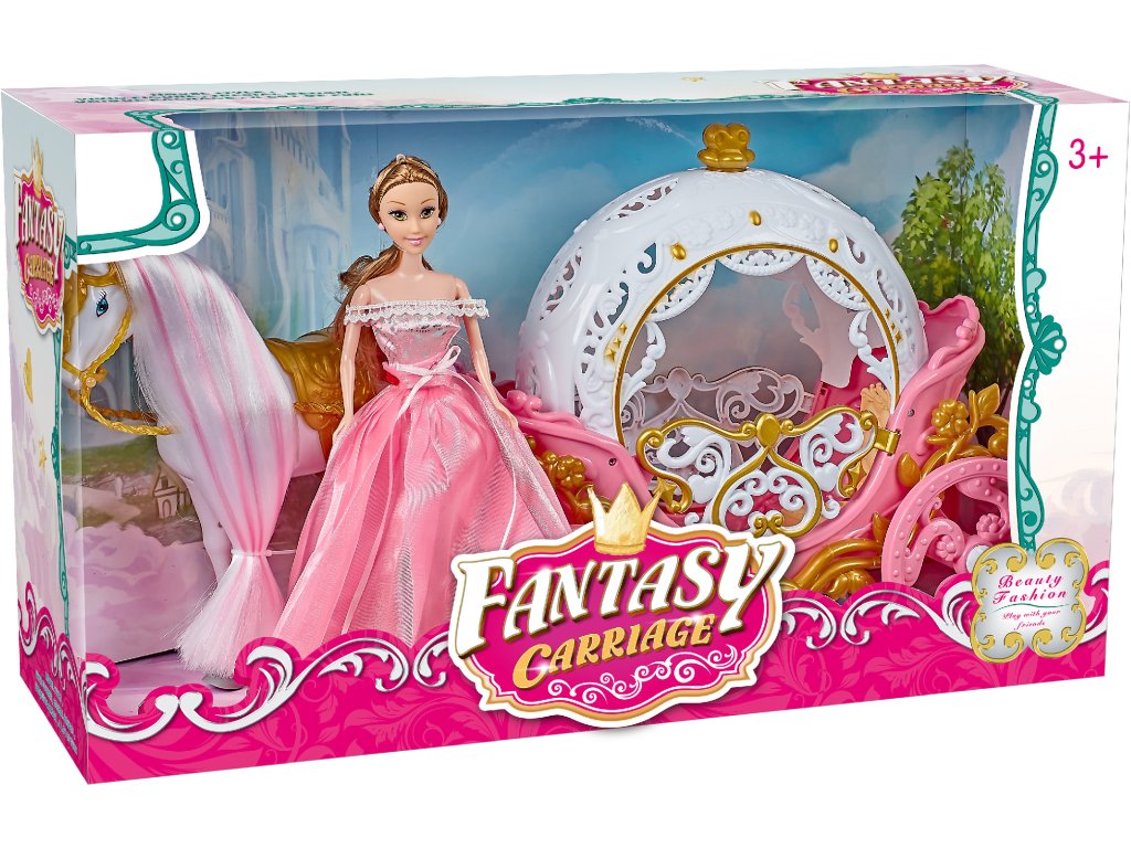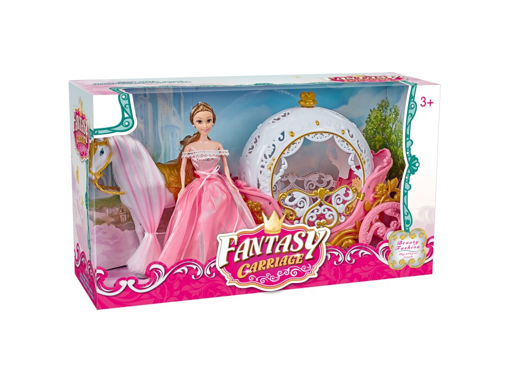 Magický kočár růžový s Pegasem a panenkou - světlo, zvuk